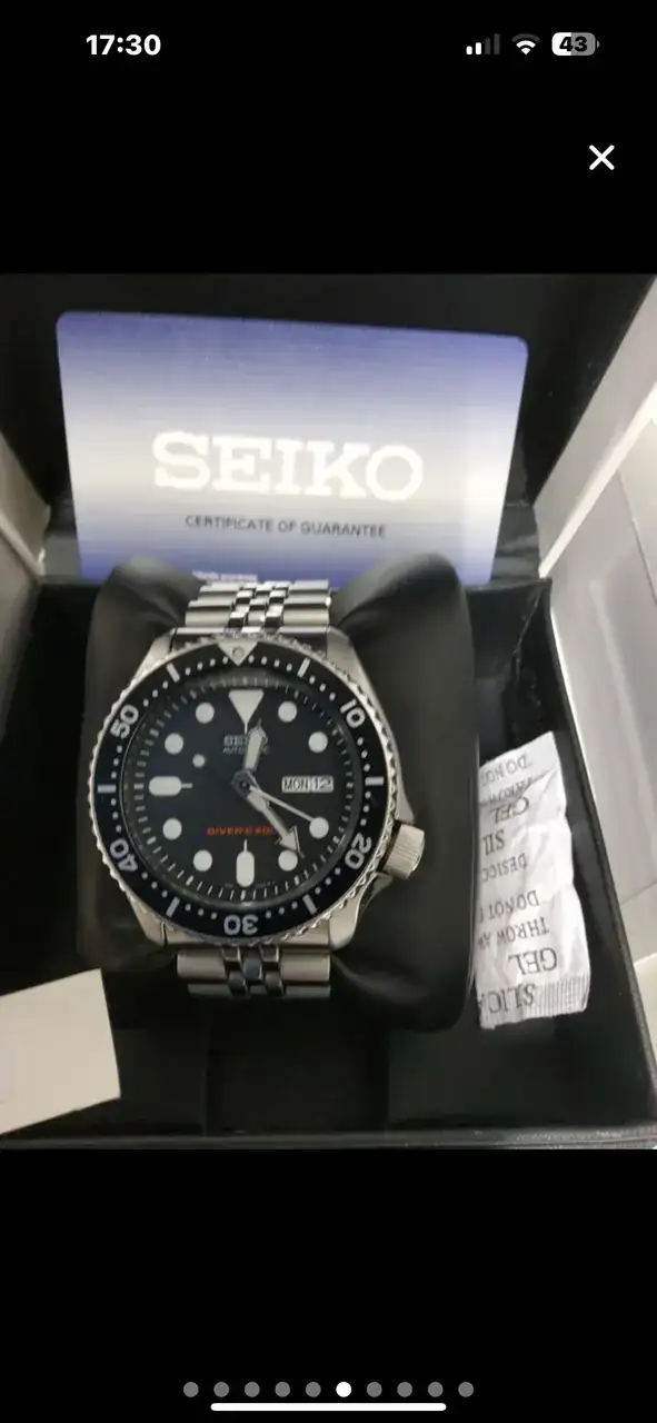 Recién revisado con factura del SAT de Seiko por importe de 155€ donde se le hizo cambio de juntas, hermetismo, revisión del movimiento, cambio de espiral y escape.