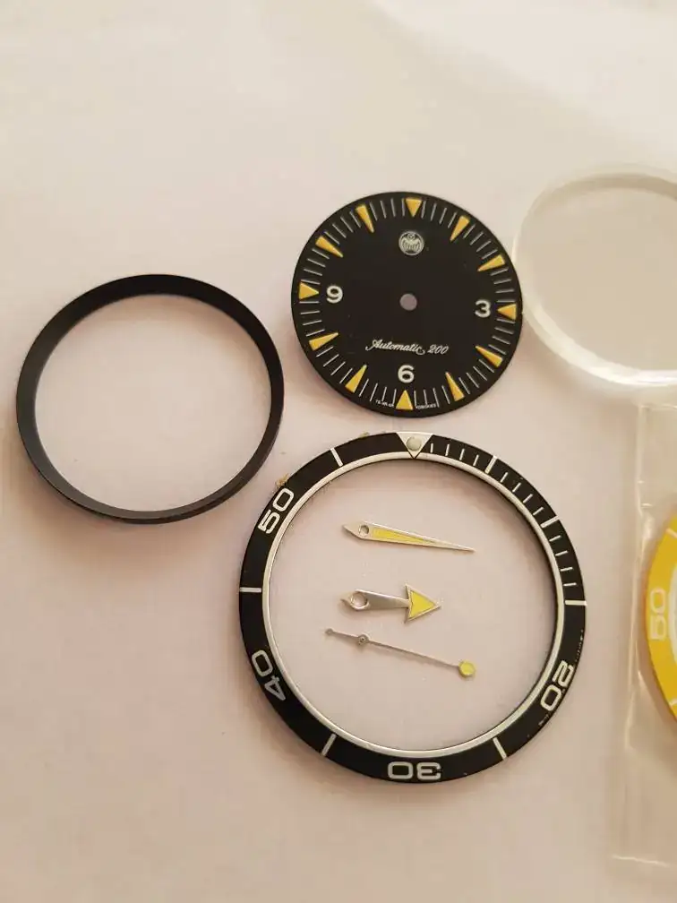 Pongo a la venta este interesante kit para tunear cualquier modelo de seiko con la caja del skx. Esta compuesto por una esfera , sos agujas a juego y bisel negro, como extra añado un insert naranja y un cristal de repuesto sin uso alguno. Pido por todo 40€ . El envio por correo certificado está incluido en el precio.