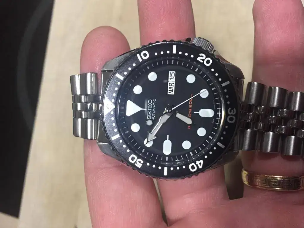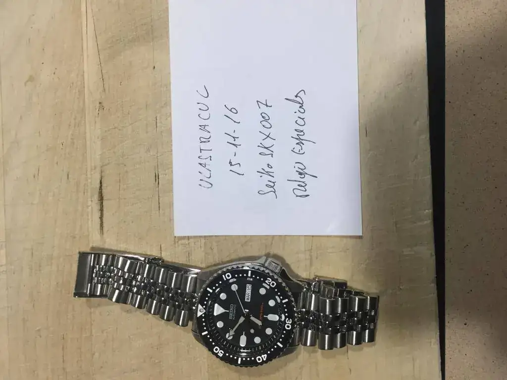 Buenos días,sacó para venta este clásico de Seiko,su estado es usado(sin golpes ni arañazos profundos,bisel y cristal impolutos)podría pasar por reestreno,si no fuera por las microrayas en las partes pulidas.El reloj está en garantía hasta 10/2018.Su marcha diaria es fantástica(puesto adelanta entre 3/4"día)si lo dejas reposar con La Corona arriba por la noche recupera ese adelanto y se queda en 1"día...vamos en Cosc.El reloj va con todo lo que trae de fábrica más garantía sellada y fechada por un mercante del foro,un cordial saludo y gracias al foro por ceder el espacio.