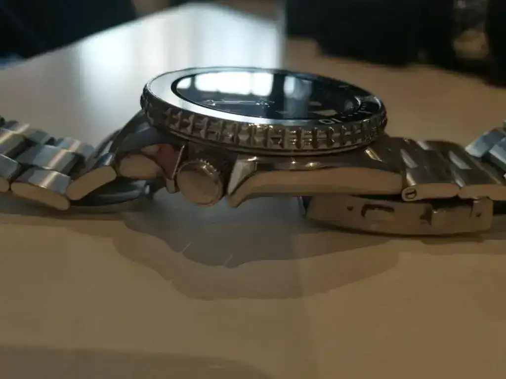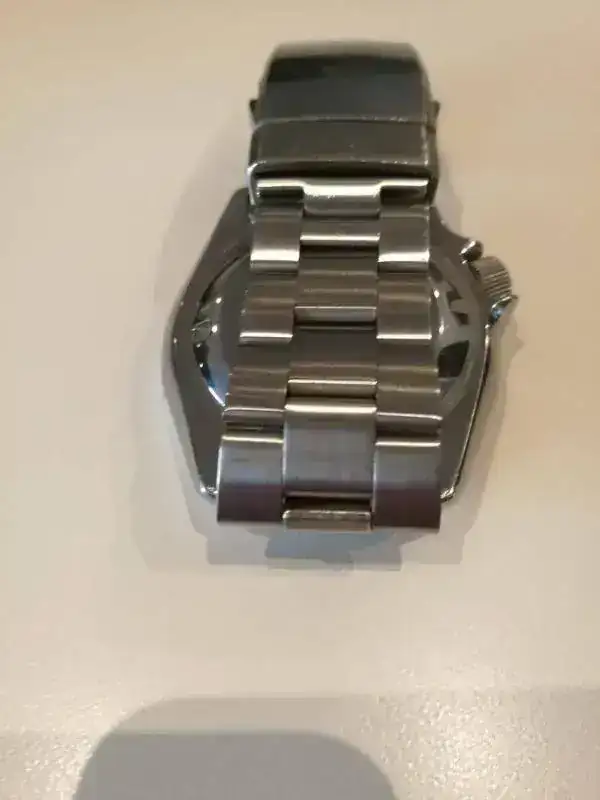 El armis es un Super Oyster 3D con ajuste de buceo de Strap Code (aquí lo ves). No está incluido en este precio, lo vendo por 45€ extra. Cuesta 77€ (94$) en Strap code. Tiene algunso pelillos en el cierre, los eslabones estan impolutos y lo entrego con todos los que venían.