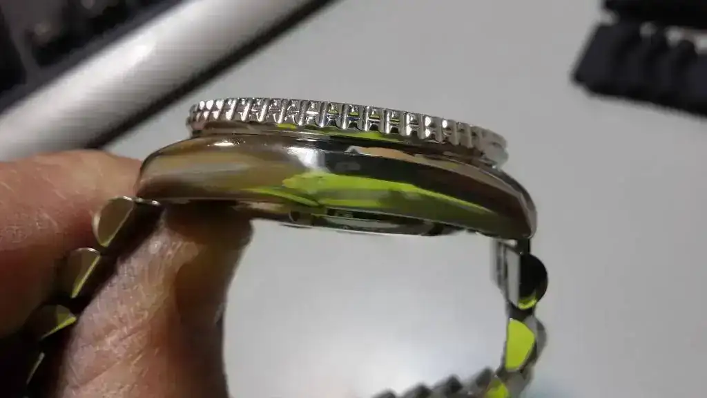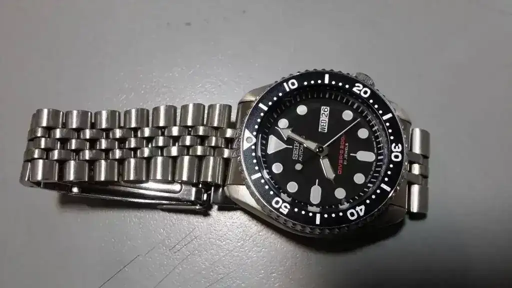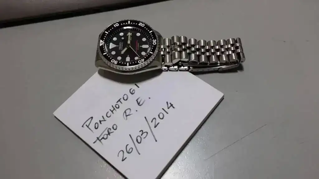 Se trata de un Seiko SKX007J1, todo un clásico del que ya se ha escrito todo. Se trata de la versión japonesa y se encuentra en un estado impecable salvando los típicos pelillos de siempre y una minúscula marca en el borde del cristal junto a las 2. No se ve a simple vista, hay que buscarla al contraluz pero ahí está y hay que decirlo. Por lo demás, nada que reseñar. Lleva el clásico movimiento 7S26 que no presenta ningún problema, armis jubilée (para mí el más cómodo con diferencia de cuantos he tenido y además nunca se rallan los eslabones). Acompaño eslabón sobrante, su caja Seiko original, documentación, tarjeta de garantía ya caducada. En su día comprado a un ilustre mercante del foro. Lo demás ya sabéis, caja de 42 mm., ancho entre asas 22 mm. W.R.: 200m. bisel giratorio unidireccional, cristal hardlex, corona roscada...