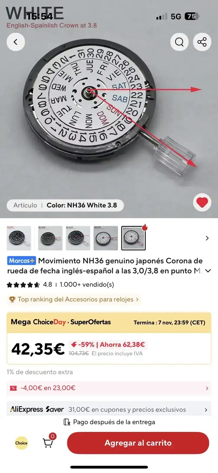 Mi relojero ha preguntado en seiko y el 4r36 esa sobre los 95€ y viendo el NH36 en AliExpress sobre los 60€.