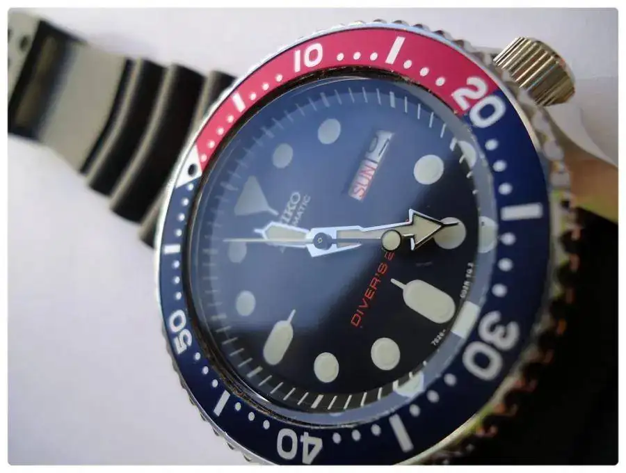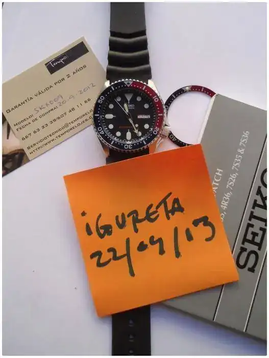 Vendo este SEIKO AUTOMATIC SCUBA DIVERS 200M SKX009K. Movimiento automático Japonés 7S26 con 21 rubies. Dial con manecillas luminiscentes. Bisel giratorio unidireccional. Caja de acero totalmente estanca, serial y marca registrada en parte posterior. Corona roscada. Cristal Hardlex muy resistente. Calendario day/date a las tres en español e inglés. Espacio entre asas 22 mm. Sumergible 200m. Dimiensiones: 41mm sin corona; 44mm. con corona. Lleva un caucho Z-22 seiko.