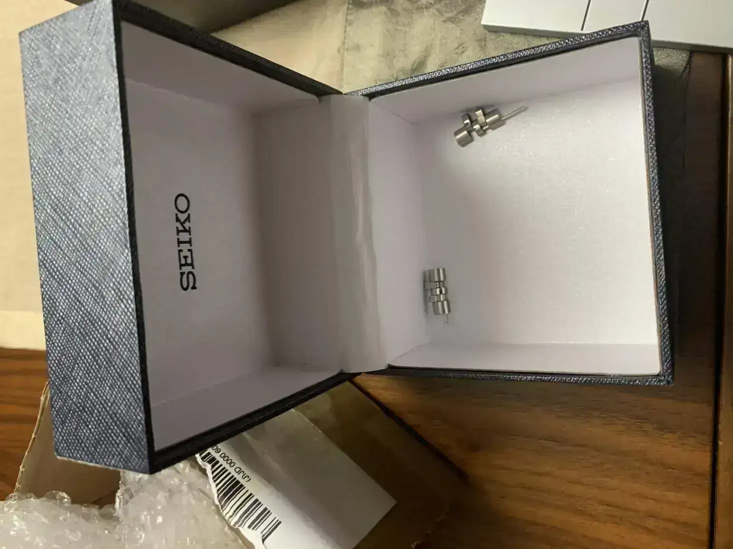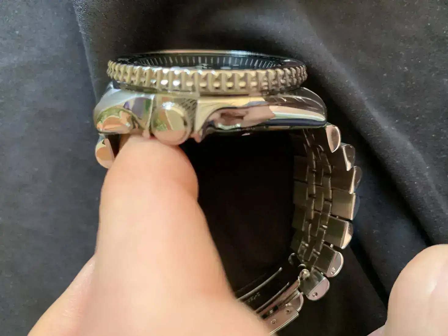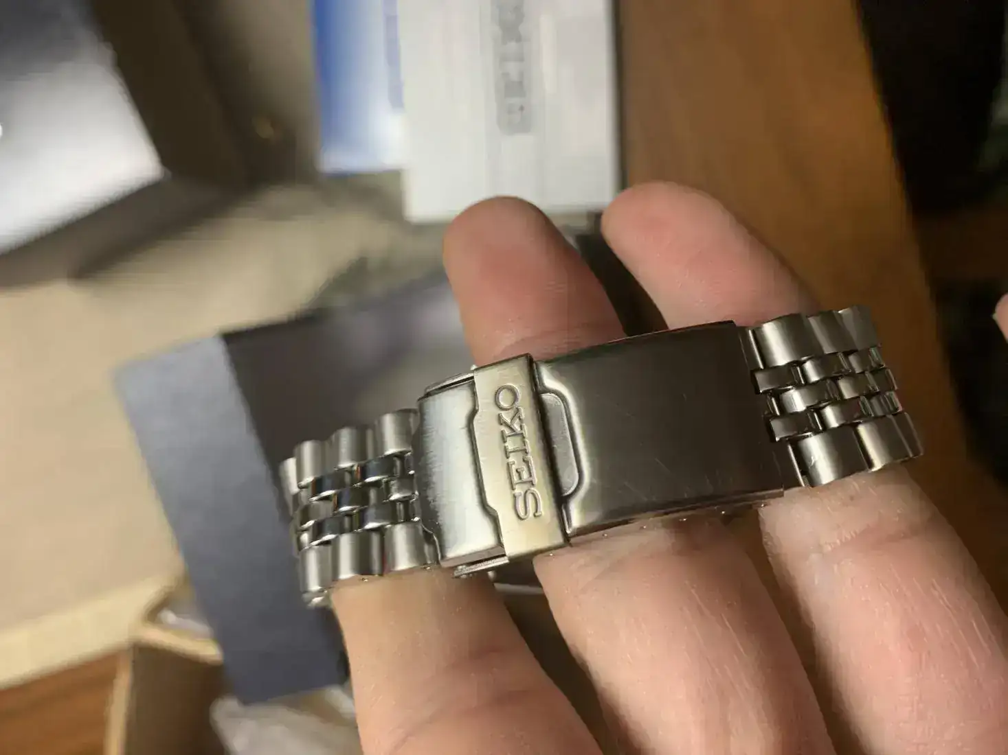 Presenta unos micro pelos en el cierre, y son de haberlo dejado en la caja guardada junto a los eslabones sobrantes, ya que el reloj no ha tenido uso alguno. A las fotos me remito.