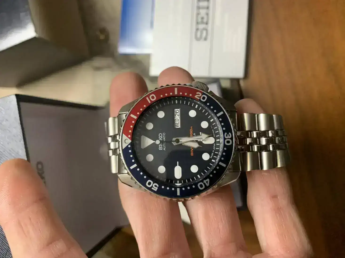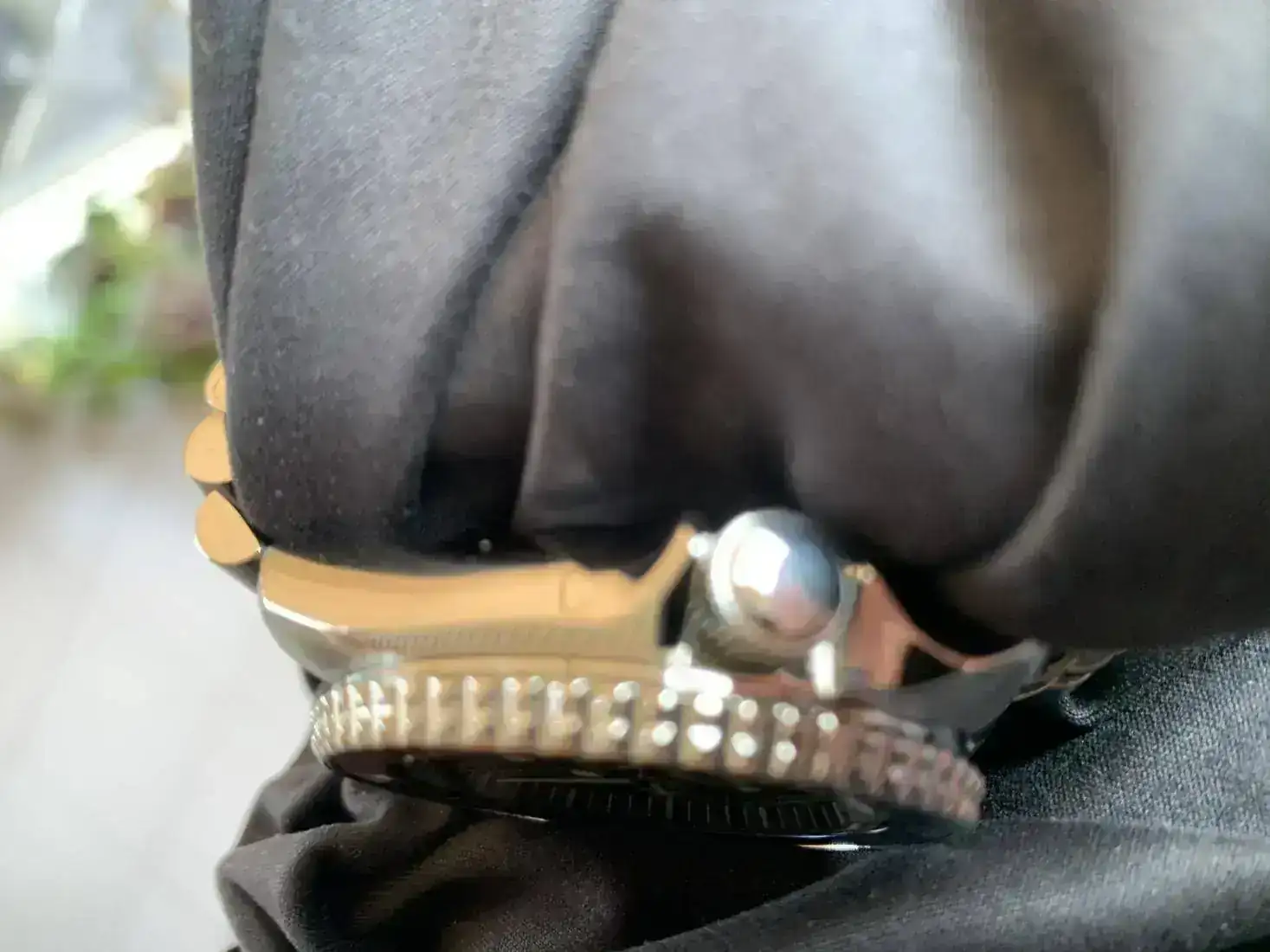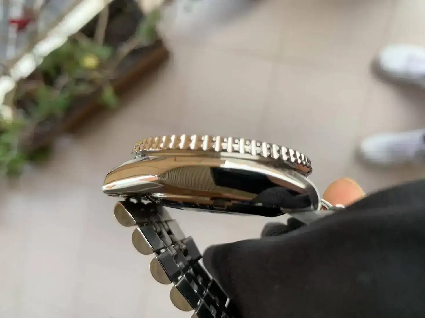 Presenta unos micro pelos en el cierre, y son de haberlo dejado en la caja guardada junto a los eslabones sobrantes, ya que el reloj no ha tenido uso alguno. A las fotos me remito.
