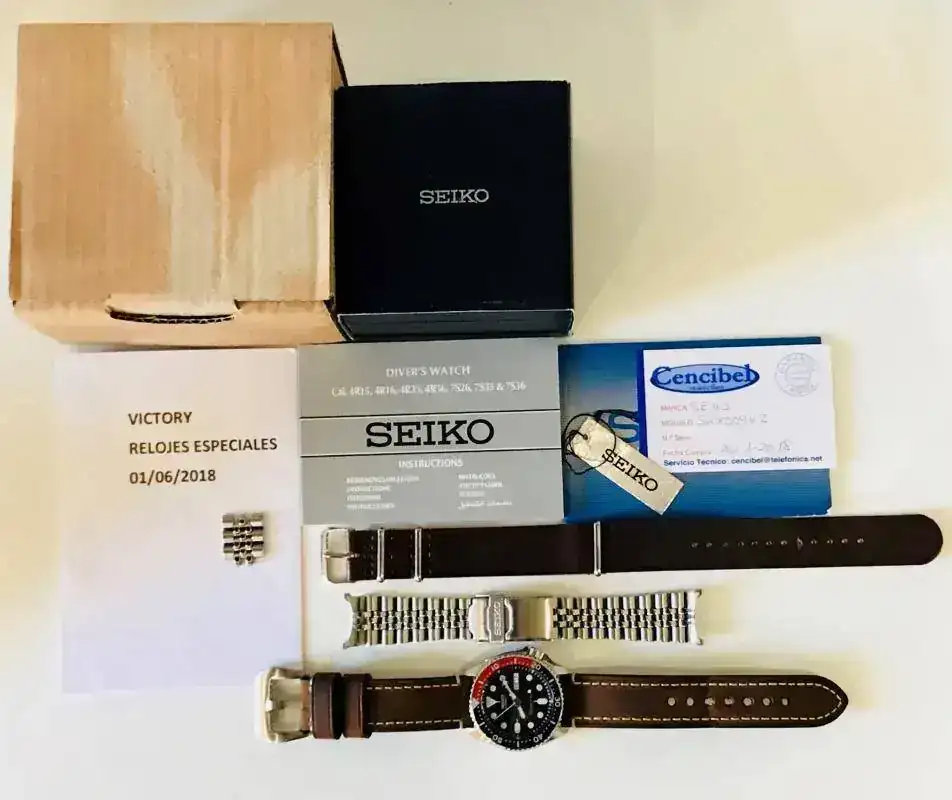 Incluyo a parte del armis jubilee una nato de cuero marrón yuna correa también de cuero grueso marrón de gran calidad con hebilla tipo PAMque ha sido la que mas uso ha tenido quedándole prácticamente toda su vida útil.