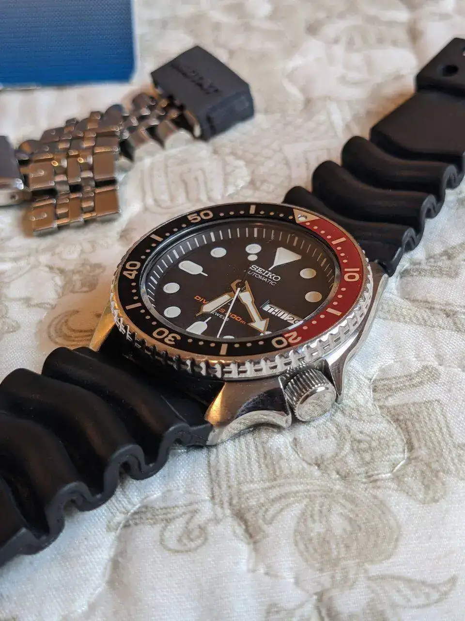 Vendo Seiko Skx009J en estado excepcional dado que tiene muy poco uso. Es la versión Japan Made que es la más difícil de encontrar. Estado excepcional puesto que tiene muy poco uso. Viene con su caucho y su armis originial, caja, papeles, etiqueta, tarjeta garantía sellada, etc, una bonita pieza de colección.