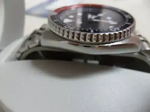 pequeña rayita dificil de sacar en las fotos,pero que me veo con la obligación de informar.La caja está impecable al igual que el bisel.