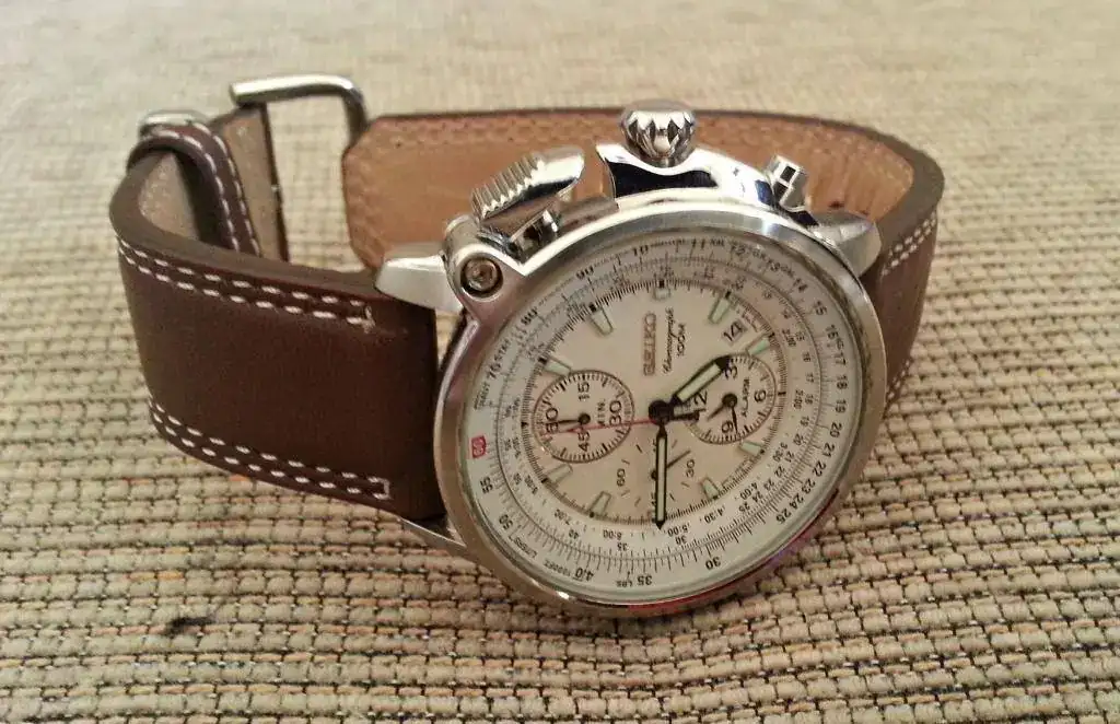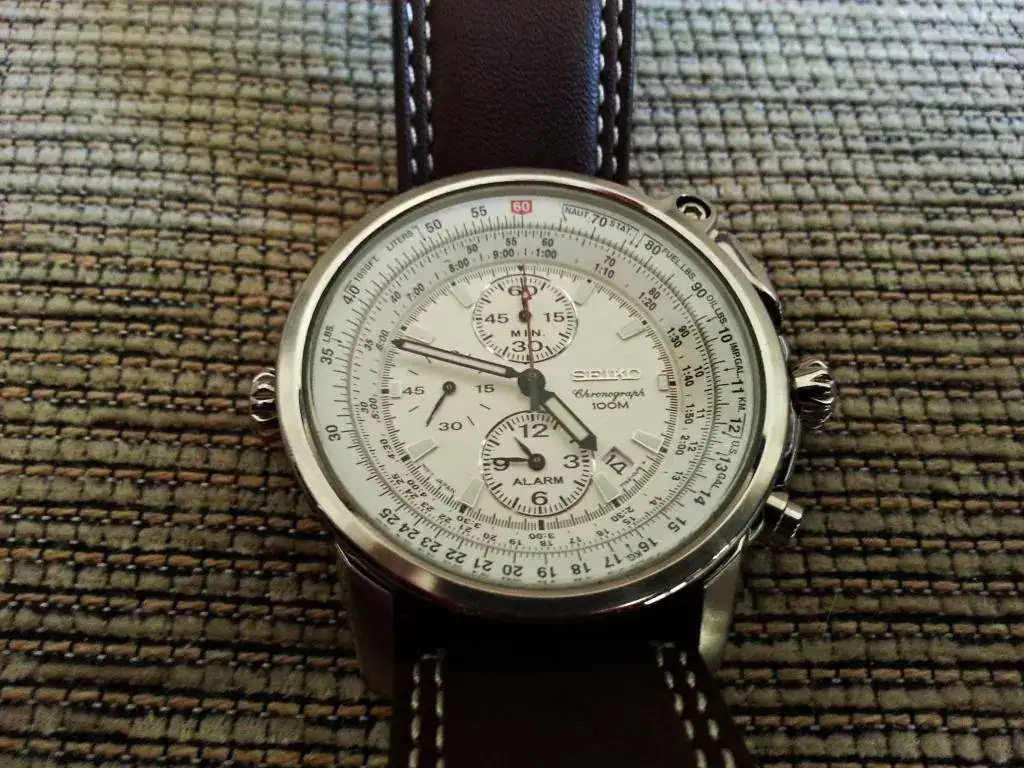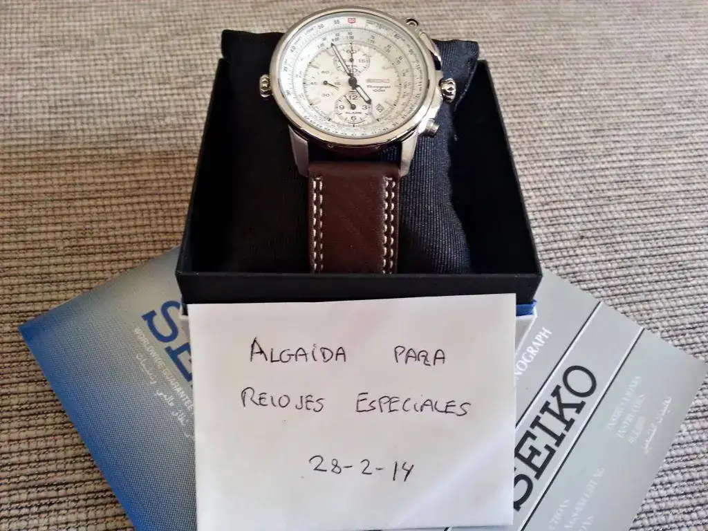 Presento para su venta a este elegantísimo cronógrafo-alarma flightmaster de Seiko que está en perfectas condiciones,sin rayas ni anomalía alguna. Como pueden observar por su lo impecable que está su correa de cuero, practicamente no me lo he puesto nunca. Ha estado guardado en una vitrina en mi colección personal.