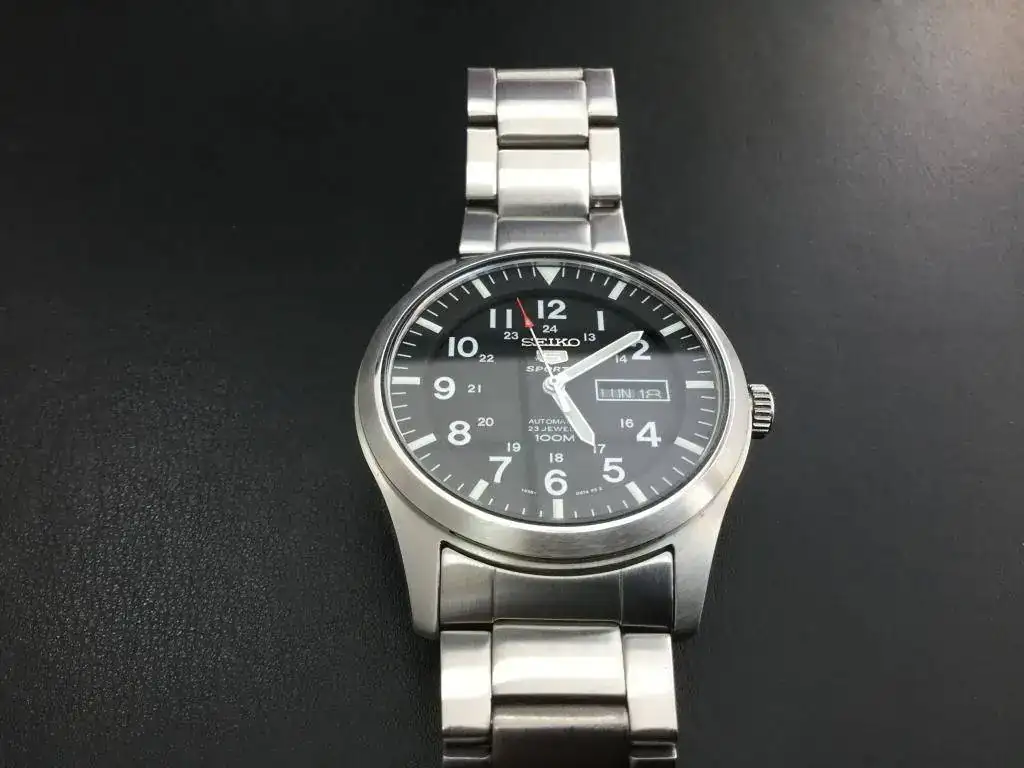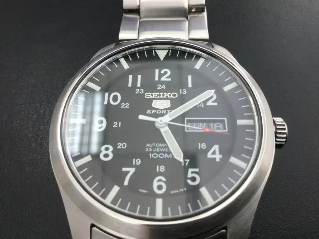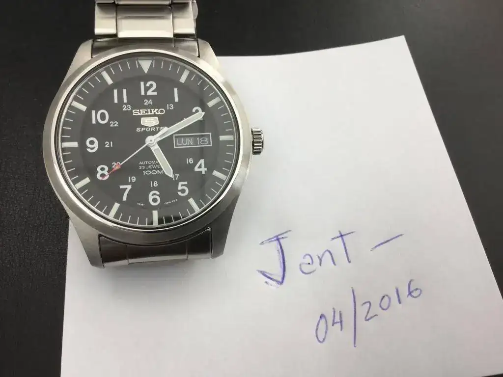 Vendo este bonito Seiko tipo militar con 7 días de uso, fue un regalo para el abuelo, sin caer en la cuenta que los abuelos que se mueven poco no pueden usar relojes automáticos ( no carga lo sufíciente para quitárselo por la noche).