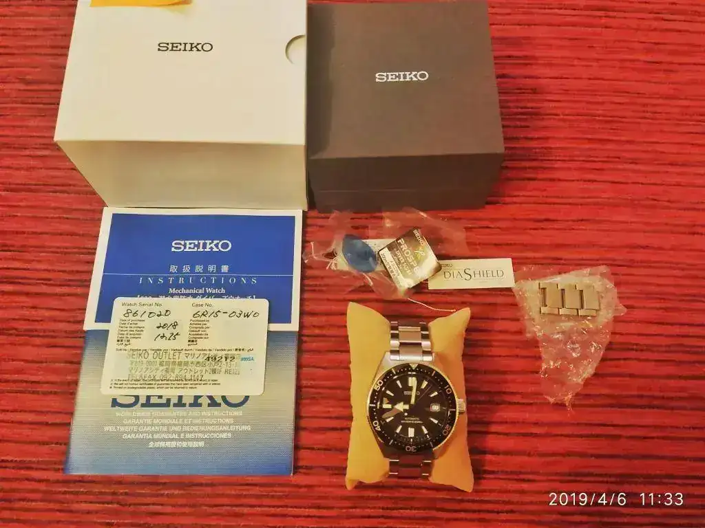 Buenas a todos, por un cambio en mi colección, voy a sacar algunos de los relojes que no uso. En este caso se trata de un Seiko SPB051 o SBDC051J1, 62mas, como queráis llamarlo, de esfera de color negra, comprado en enero de este año 2019 y sin usar, sin salir de casa. Aun estando nuevo, prefiero como siempre entrega en mano para comprobar su perfecto estado. El reloj lo entrego con lo siguiente: