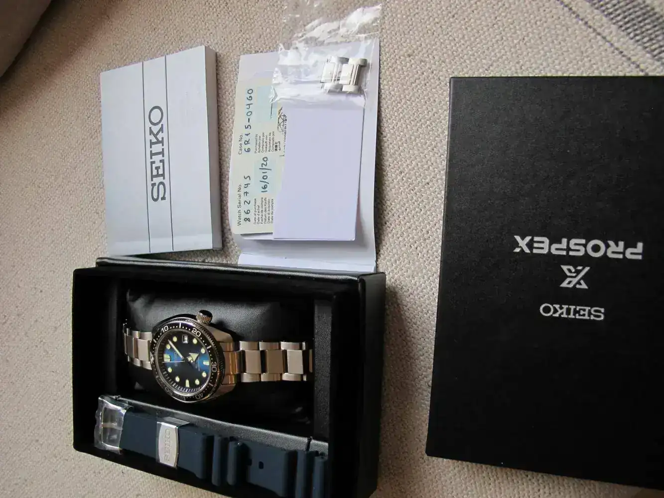 El reloj se entrega con la caja original, la correa de caucho que lleva esta versión y toda su documentación, tal como lo entrega el CO. Comprado en un CO español en enero de este año, por lo que tiene más de un año de garantía. No cambios, por favor.