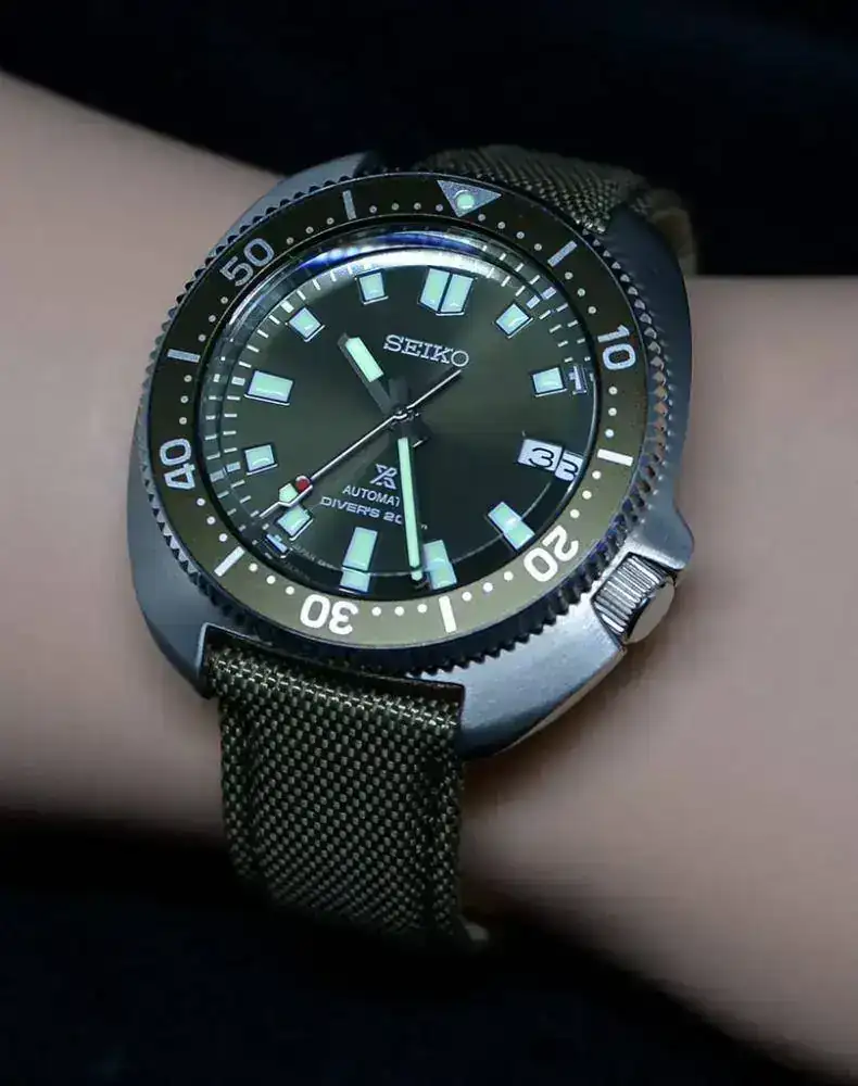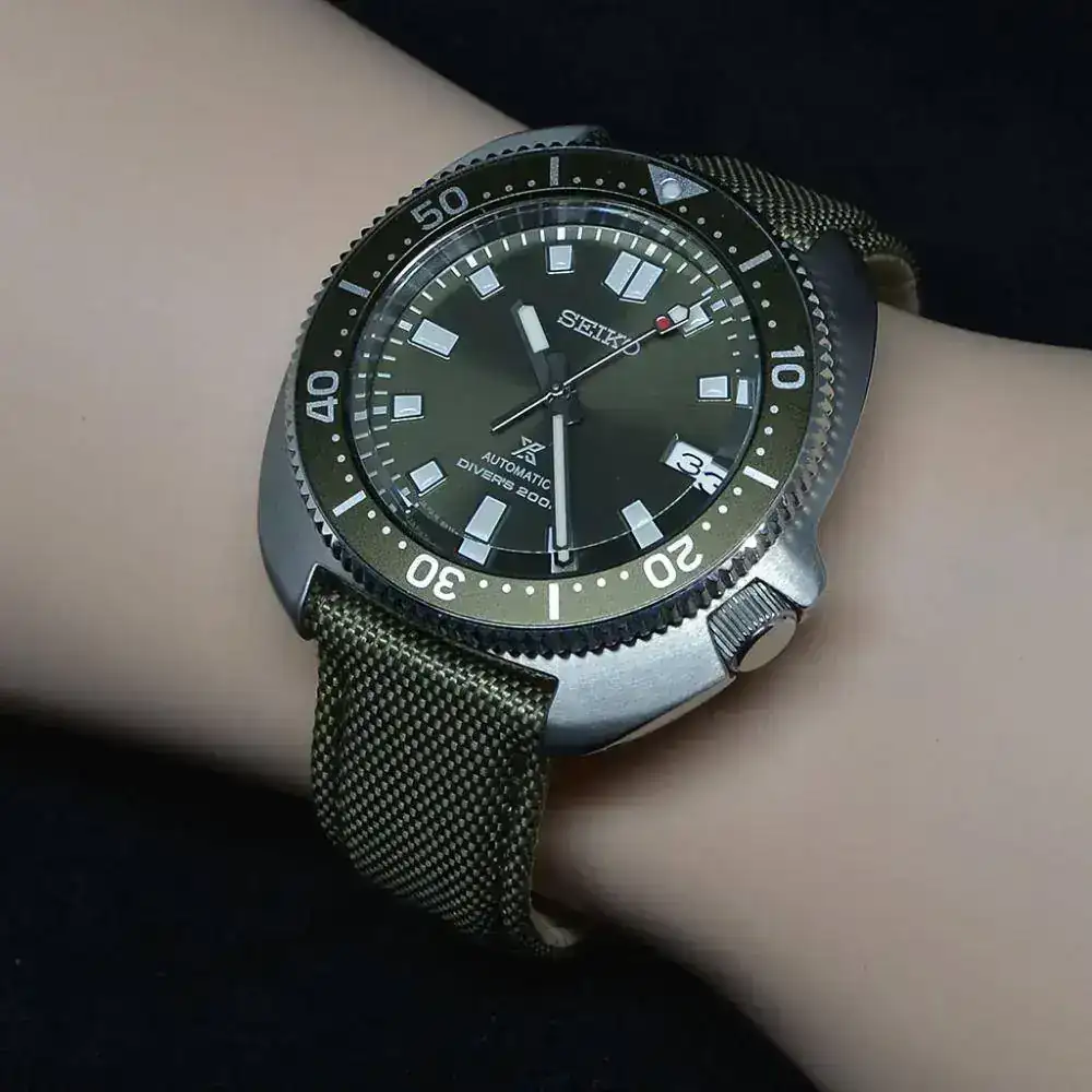 Es la puesta al día del reloj que Martin Seen llevaba en la legendaria película 'Apocalypse Now' del director Francis Ford Coppola, esta vez con una preciosa esfera y bisel verdes y con correa de caucho color negro de extraordinaria calidad.