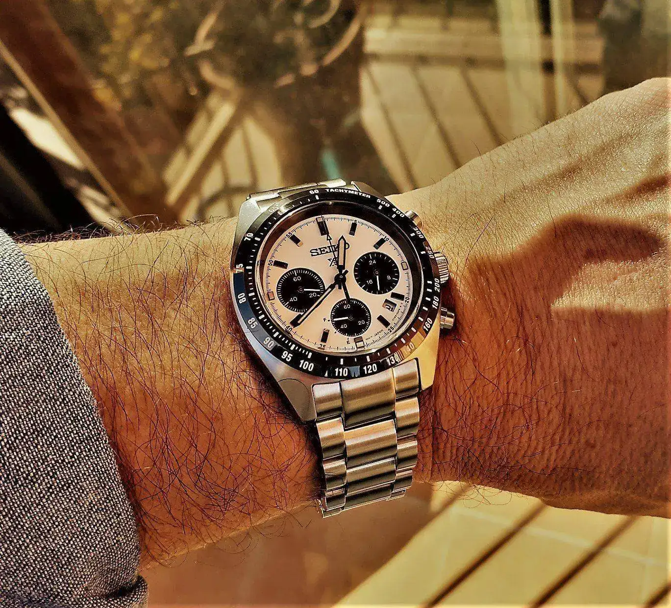 Un crono panda muy bonito, algunos ya le llaman el "seytona" por su parecido a algún modelo de Rolex Daytona, yo pienso que muchos relojes se parecen y Seiko tiene suficiente personalidad como para no andar copiando, pero bueno...