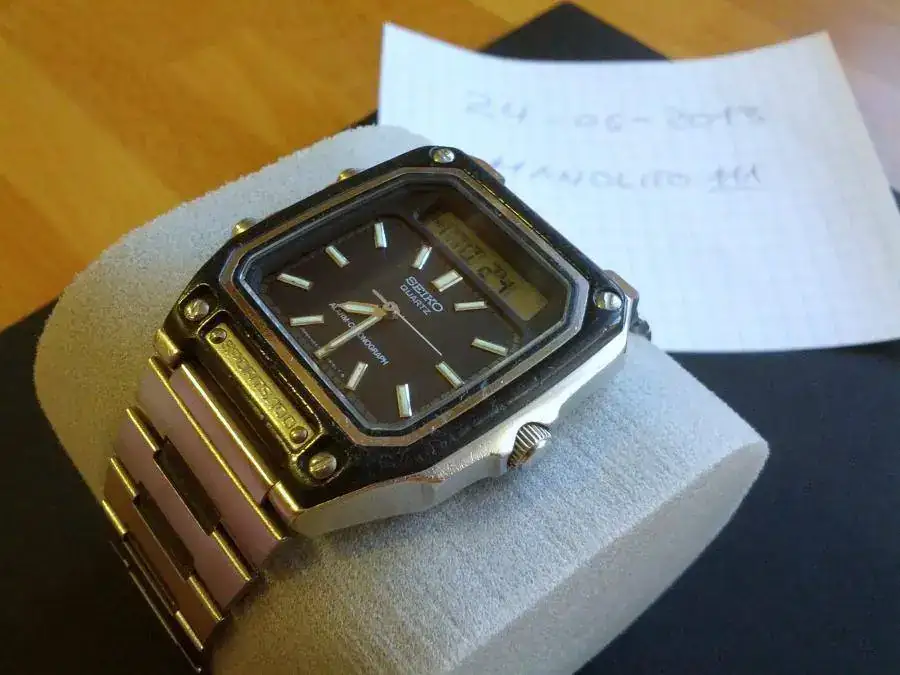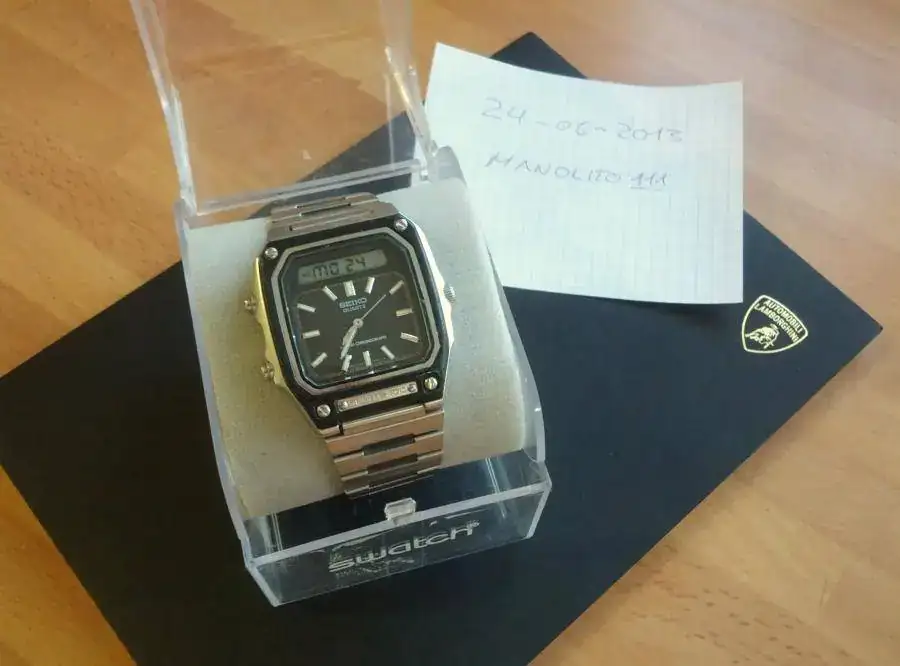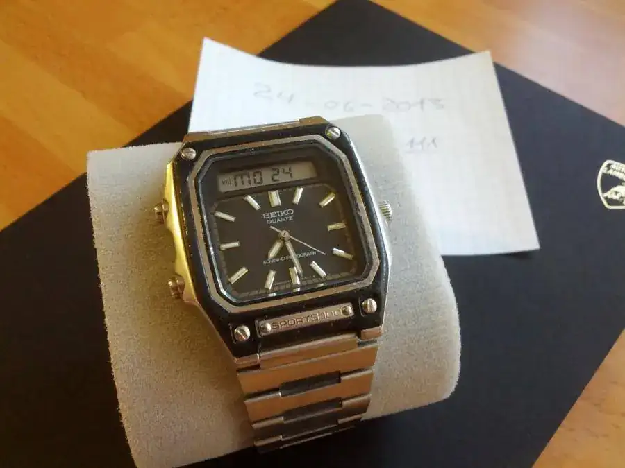 Hola amigos,vendo este Seiko Sports 100 vintage anadigi por 40 euros.Se trata de la primera compra que hice en el foro y ahora es tiempo de que lo disfrute otro forero.Su estado es usado (como me llegó) y tiene alguna rayita en el cristal.Debe tener algún problema con el muelle de la sonería ya que no suena cuando cambia las funciones digitales.Entrego con una caja Swatch para su transporte.El envío lo dejo a elección de su futuro dueño pero prefiero entrega en mano en Madrid.