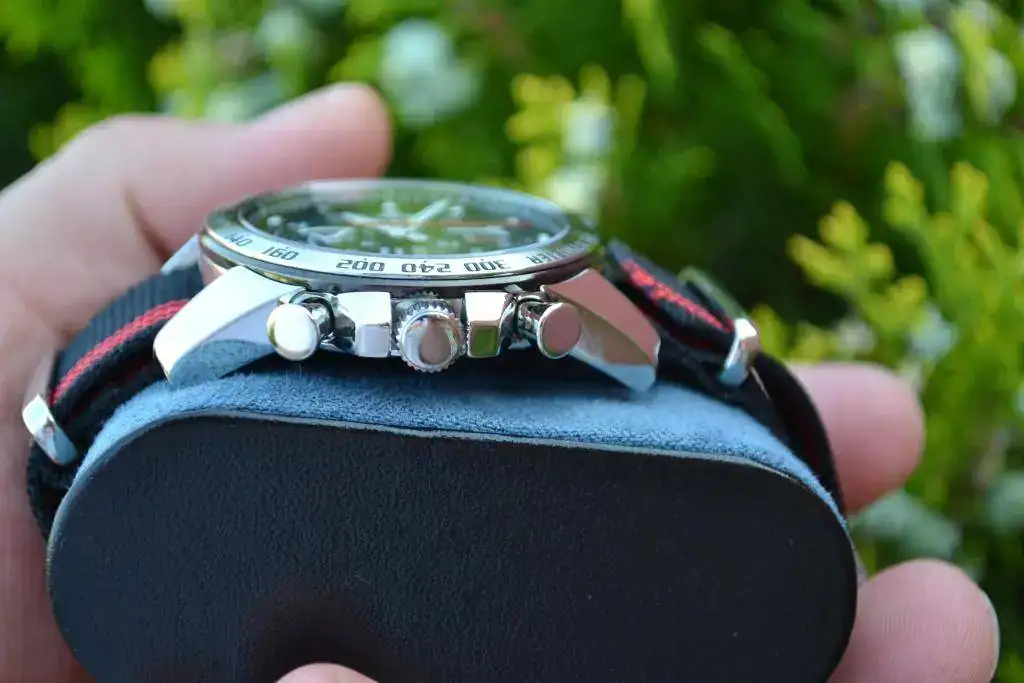 La correa de piel, magnifica, la use una vez. Para no estropearla con el sudor, la quité y lo he usado con correas NATO.