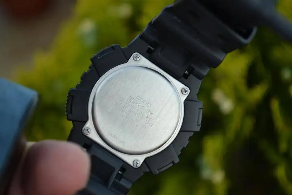 Es de Abril del año pasado, comprado en Amazon. Y solo tiene unas ligeras señales en la tapa posterior de acero de un revolcón por la arena cortesía de una ola potente.