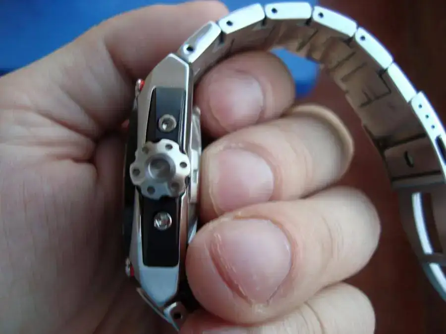 costó 990€ (en el corte inglés, claro). El caso es que el reloj está prácticamente perfecto, algún pelillo en el cierre del armis y nada más. Yo lo saco a la venta por 385€ puesto en casa por MRW 24h. Este modelo, en concreto, permite la carga manual además de la automática, y va acompañado de caja , caja interior, documentación y garantía. El fondo es ciego y no tiene ni la más ligera marca.