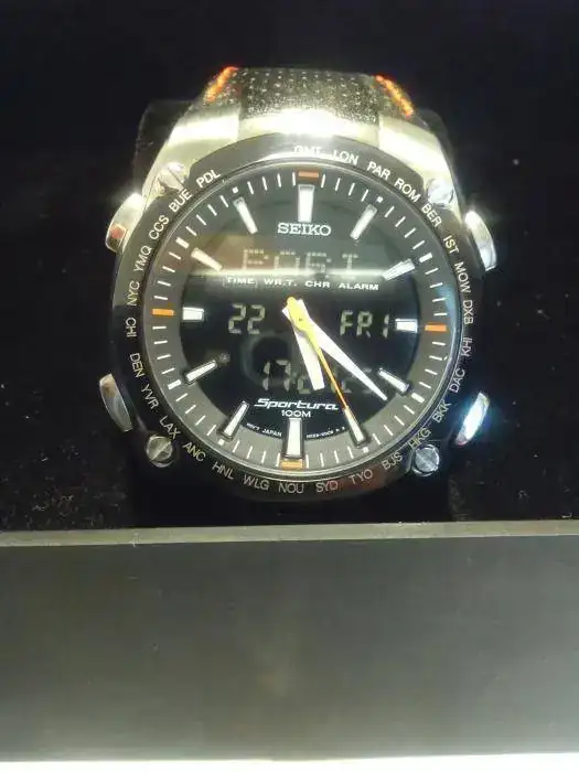 > Pantalla por donde se van deslizando los nombres de las ciudades y diversas funciones, como cronógrafo, etc.