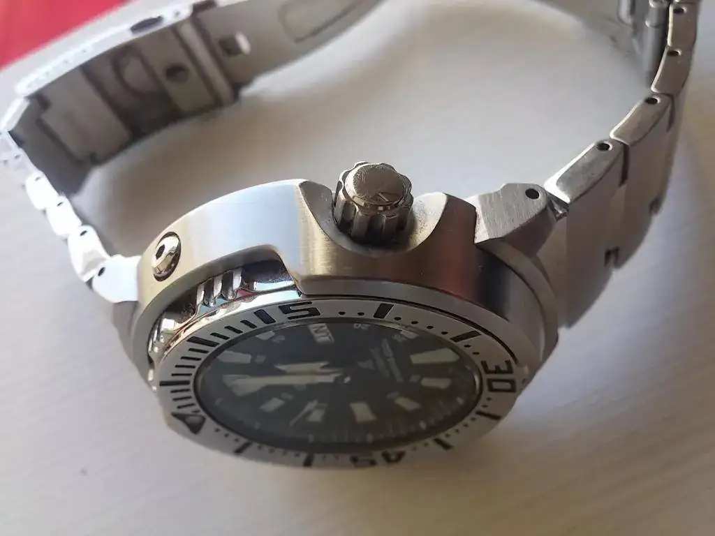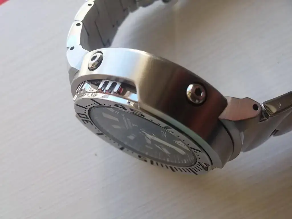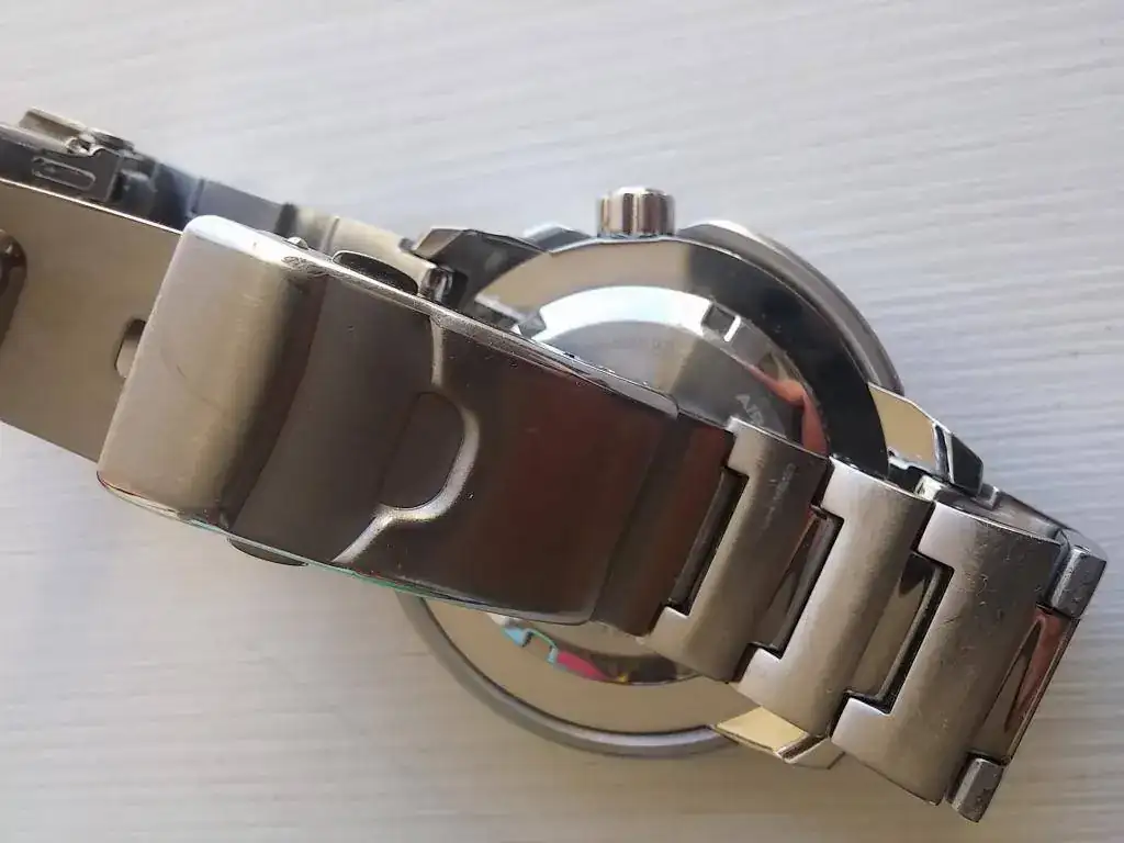 No presenta ninguna marca en el cristal, y en el armix los tipicos arañazos en el cierre pero ninguno importante sus características son: