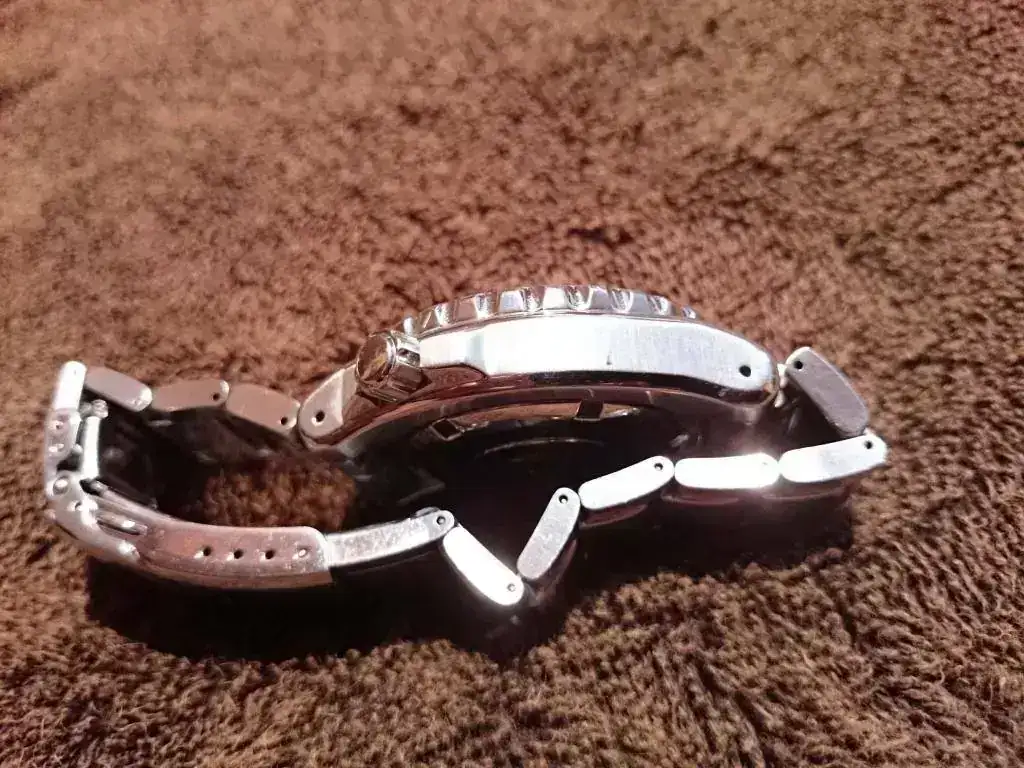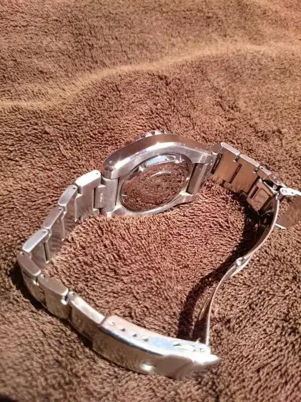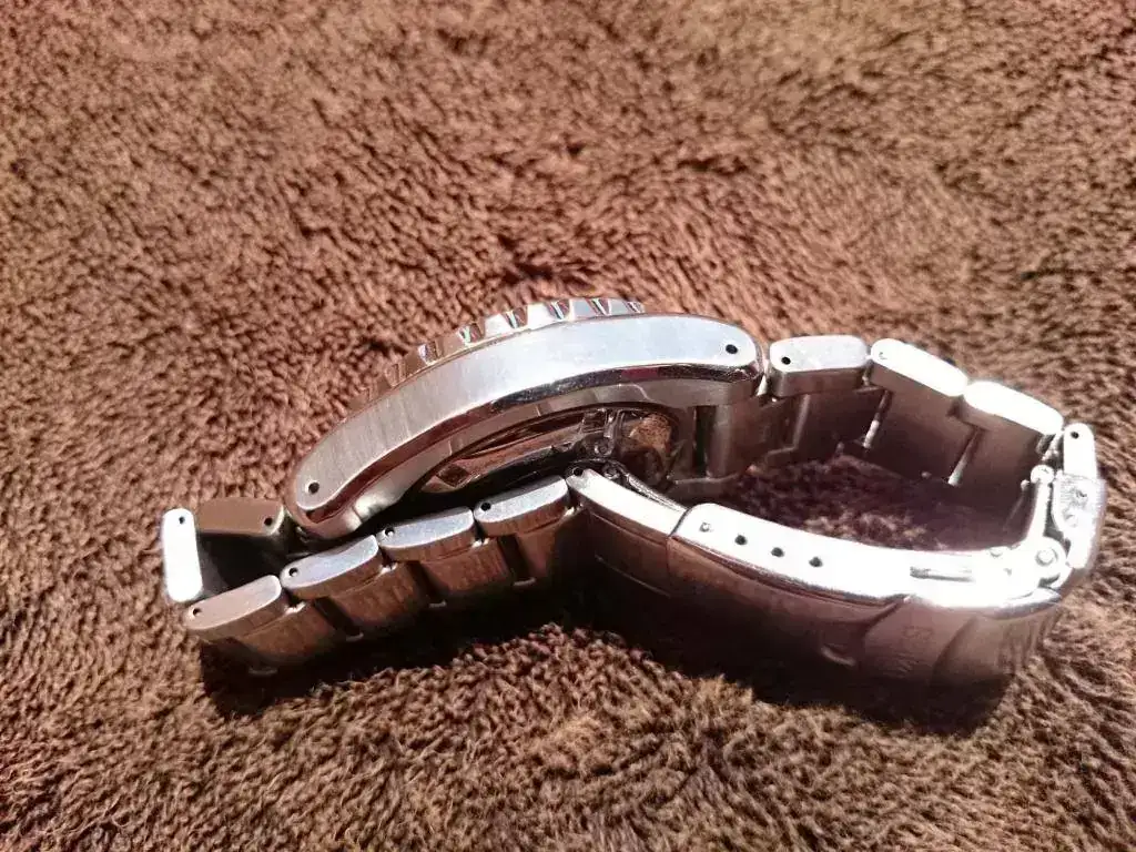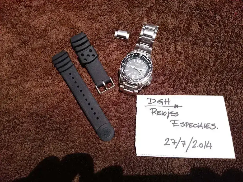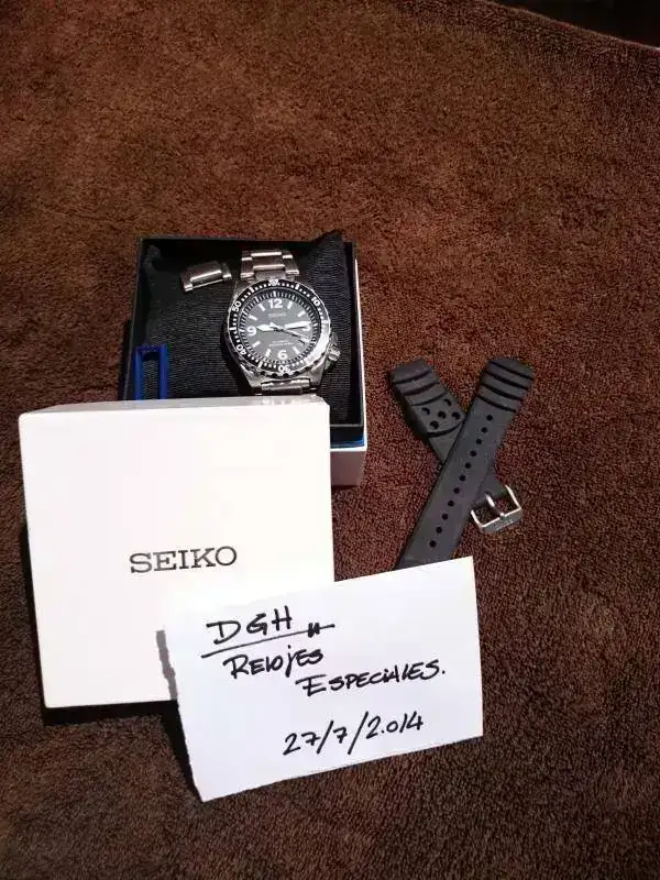 Va tal como lo recibí, con su caja, armis, caucho original, y eslabón. Me lo he puesto muy pocas veces, tiene algunas marcas de uso en armis y caja. En el cristal una leve marca cerca de las cuatro. De todo he hecho fotos.
