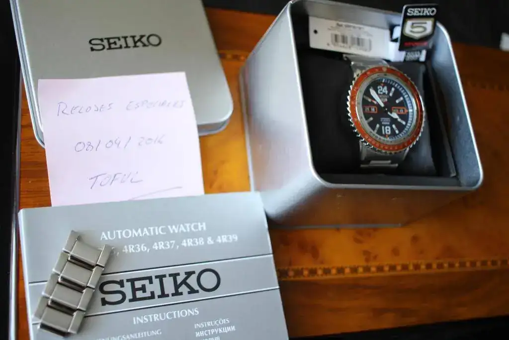 Por reestructuración de colección saco a la venta este Seiko modelo SRP351K1. A pesar de que hará unos dos años que lo tengo, es prácticamente para reestrenar, ya que si no recuerdo mal, solo me lo he puesto un día (fue un regalo y ya sabemos que da un poco de cosa vender regalos). Movimiento 4R36 con parada de segundero y remonte manual. Resistencia al agua 100 metros. Fondo con maquinaria vista (todavía tiene la pegatina). No le veo absolutamente ninguna marca en vidrio ni en caja, si veis alguna cosa en las fotos son motas de polvo, como dije al principio, está perfecto, para reestrenar. El armis está ajustado para una muñeca de 16,5 +-, pero entrego también los cuatro eslabones sobrantes. Mide 44,5 de bisel sin contar corona y 50mm entre asas. La esfera es de color azul oscuro con un bonito efecto cuando le da el sol directo.