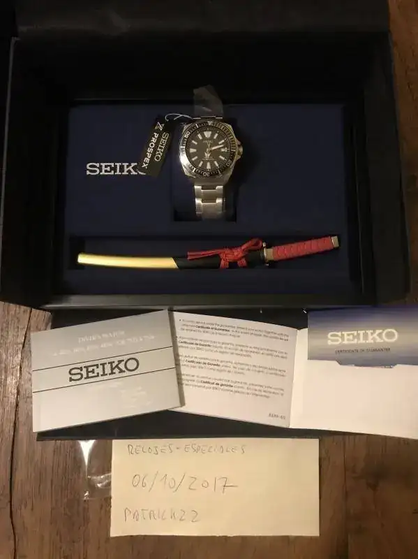 Samurai 100% nuevo, con todos sus plásticos puestos, toda su dotación y sus 24 meses de garantía oficial Seiko. Comprado nuevo por mí en España, en distribuidor oficial. lo vendo porque en mano no me gusta, lo prefiero en fotos.... eso es lo que siento con este modelito.