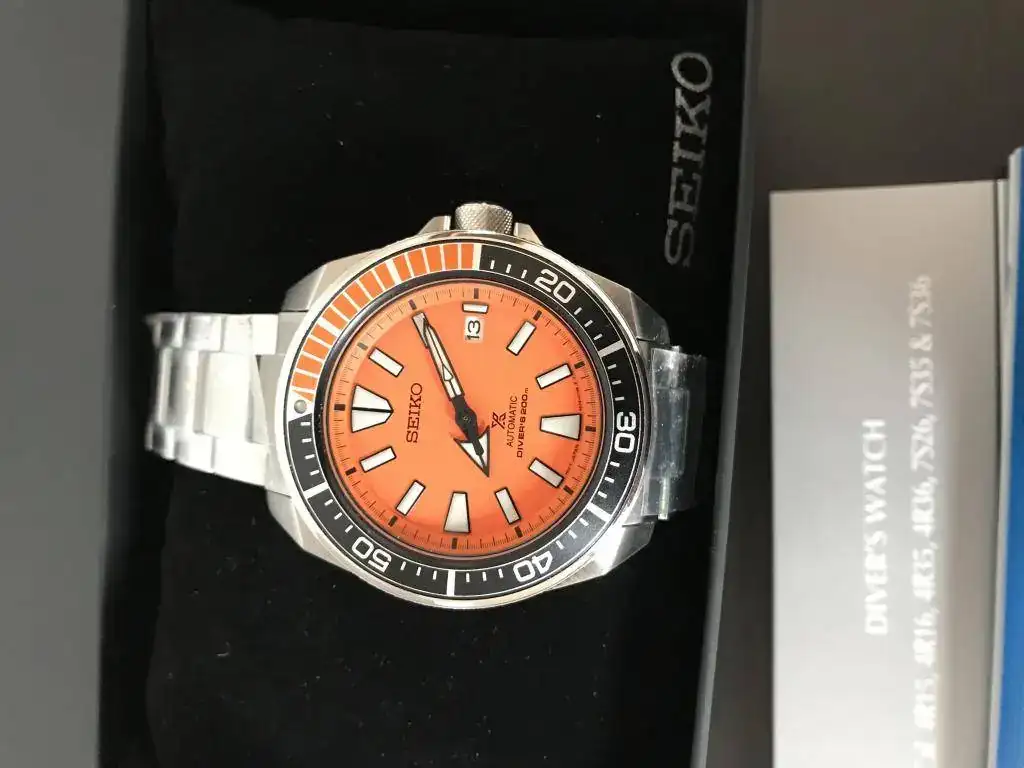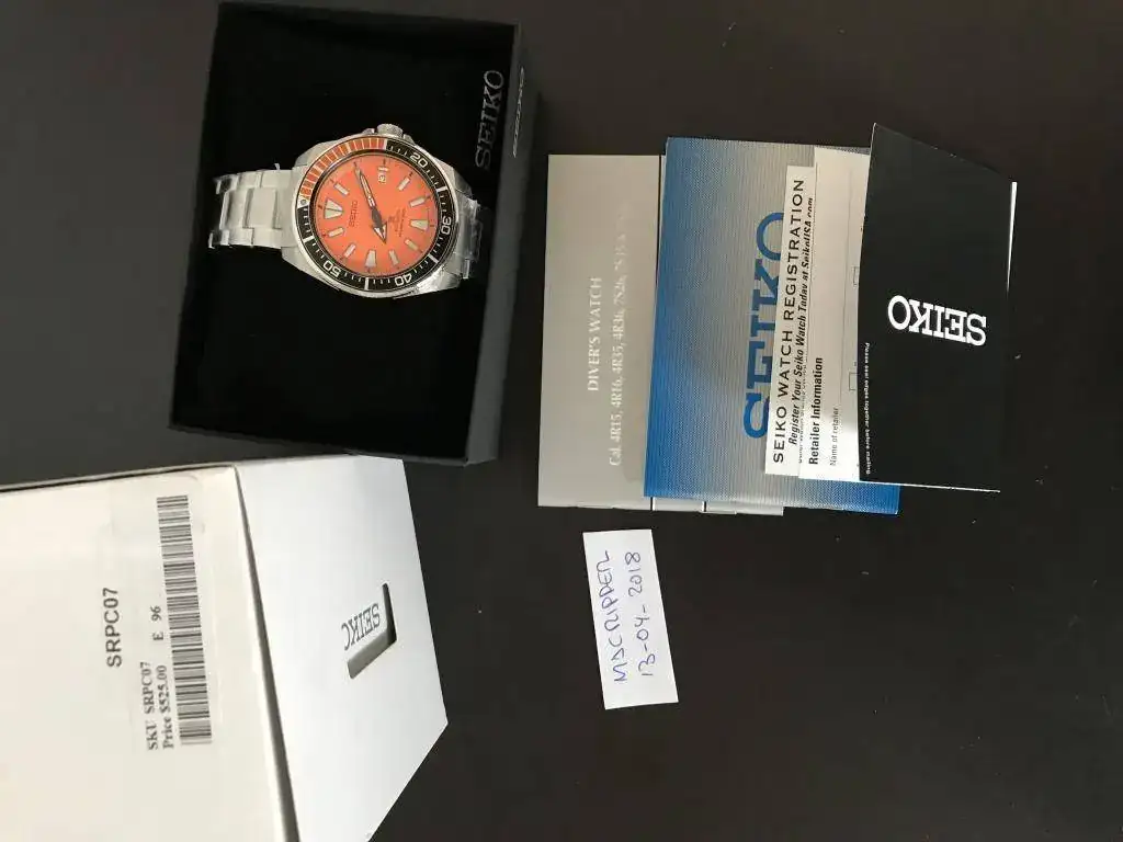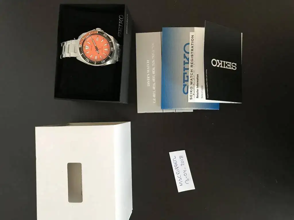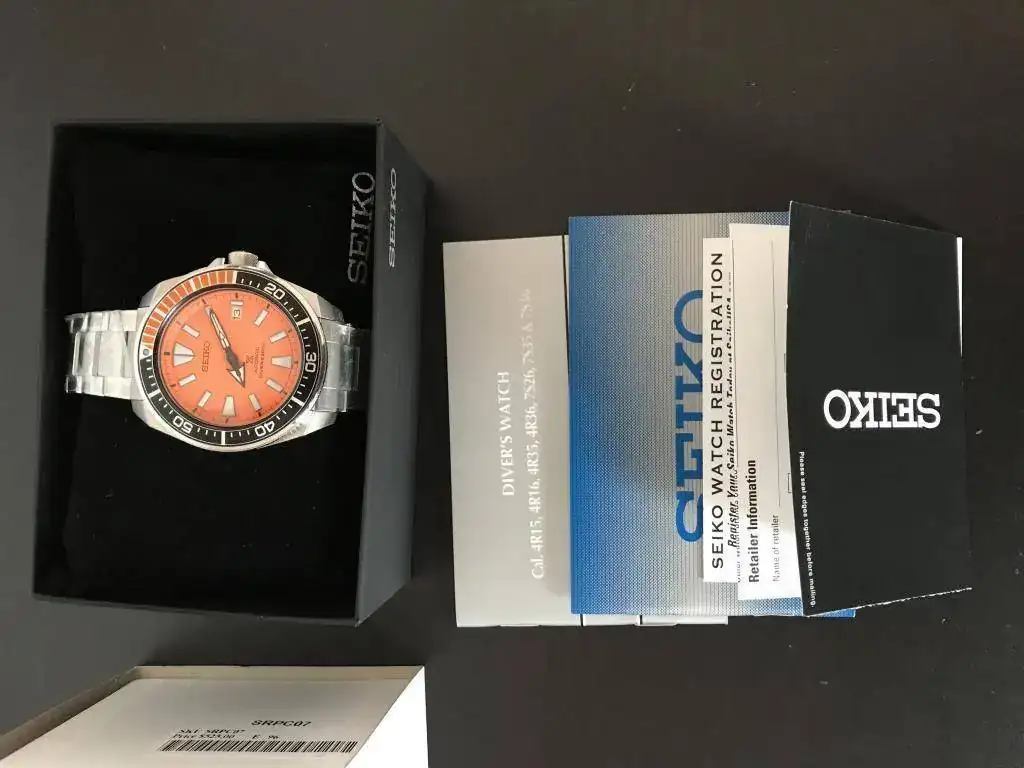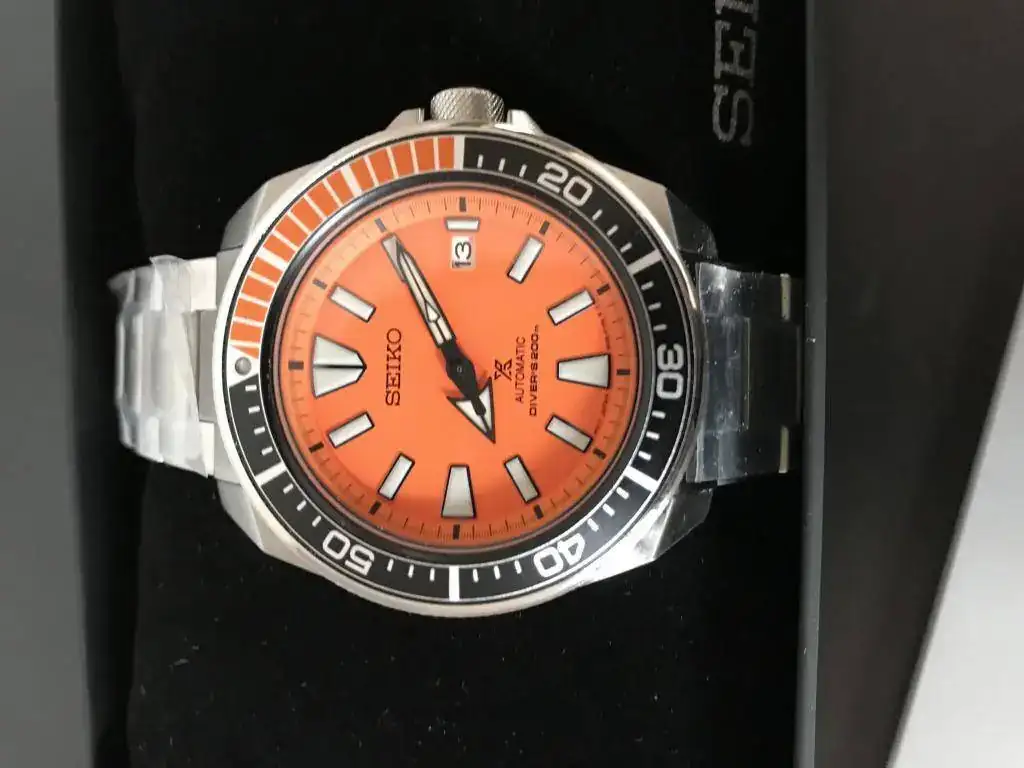 Pongo a la venta este Seiko SRPC07, conocido Samurai. Es la version naranja exclusiva para el mercado americano. Esta nuevo, sin estrenar, con plásticos. La garantía esta sin sellar, ya que el sistema americano hay que rellenar una tarjeta y enviarla para su activación.