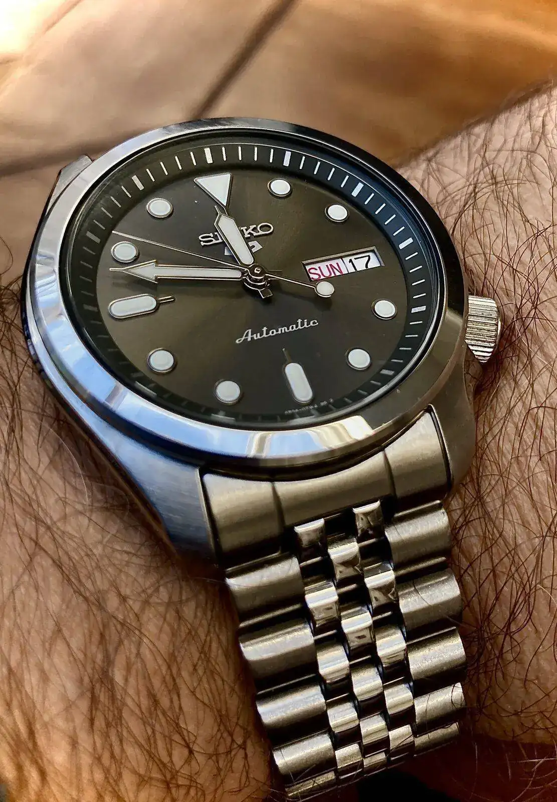 En fin, que hace unos meses me fui a por el SRPE55K1. Sabía qué era un Seiko 5, mi primer reloj mecánico fue un Seiko SNK805, y conocía la gama baja de Seiko, hace más de 10 años que tengo un SKX007; así que sabía qué podía esperar: un reloj bonito y con caracter, robusto y que funcionara bien, acorde con su gama.