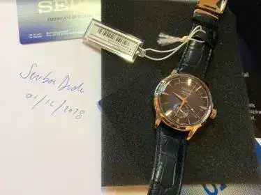 Hola a todos. Pongo a la venta este Seiko Presage Starlight SSA361J1 (SARY087), ed. limitada a 3.500 unidades. Comprado por mi en un CO Europeo el 02/03/2018 (adjunto factura física). Dotación completa: caja exterior, interior de terciopelo azul marino edición limitada, etiquetas, plástico original, manuales y garantía.