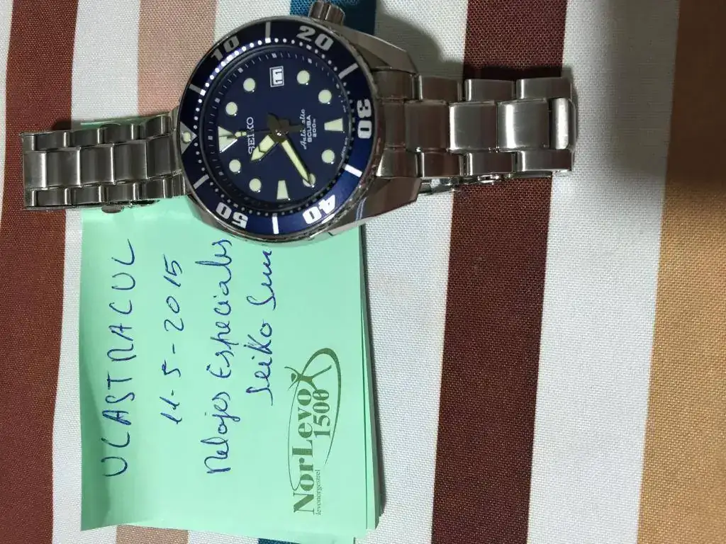 Buenas noches saco para cambio este Seiko conocido por todos,el estado del reloj es usado(microyas superficiales,en partes pulidas y brazalete metálico,tanto el cristal como el bisel y la tapa trasera perfectas)el reloj va con todo lo que traía de fabrica mas la tarjeta de garantía de 2 años de cencibel sellada y fechada en enero de este año.Para cambio busco un Longines conquest Quartz en esfera negra,un Tag heuer aquaracer en cuarzo esfera negra(modelo des catalogado de 38mm)un tag F1 en cuarzo con esfera negra...etc,vamos algún reloj polivalente de cierta calidad.El cambio seria reloj x reloj y cada uno paga sus portes,para cambio lo valoro en 375eur.Una cosa que quiero destacar del reloj es que la fecha esta ligeramente descentrada hacia abajo,a simple vista es inapreciable(yo me di cuenta el otro día al ir a hacer trato con un compañero del foro,5 meses después de comprarlo y por eso abortamos el trato).Contacte con Andres de cencibel para comentarle el tema y me respondió que entraba dentro de los parámetros de calidad de Seiko y que no me lo cubre la garantía...y es normal por que es inapreciable,pero si te fijas detenidamente unas milésimas de milímetro esta descentrada.Gracias al foro por ceder el espacio,un cordial saludo.[TABLE="class: cms_table_text_table, align: left"]
