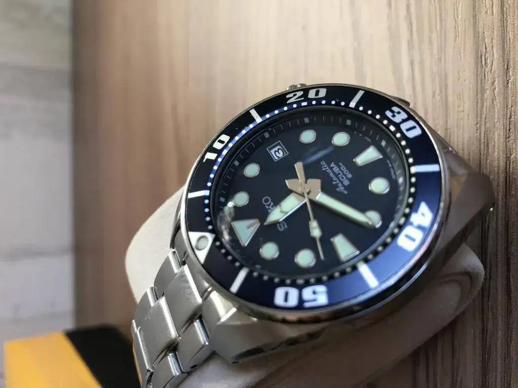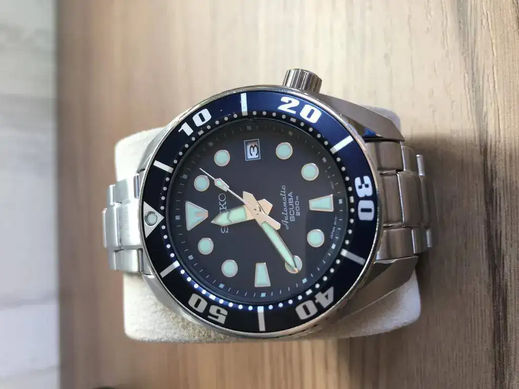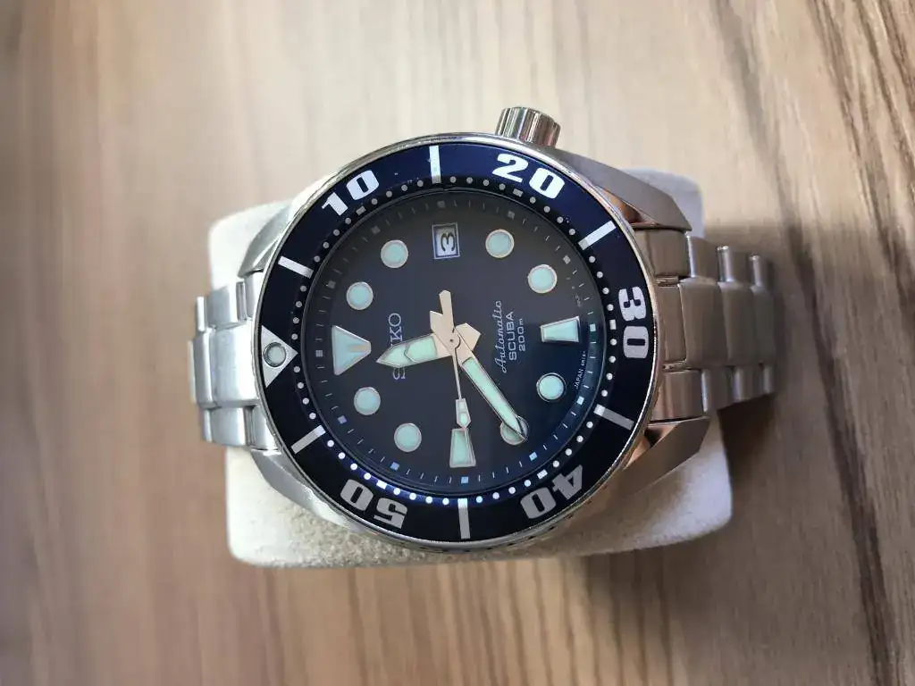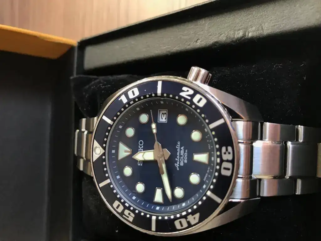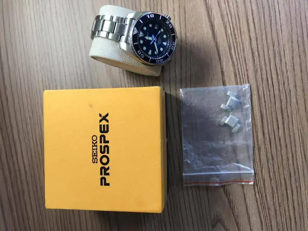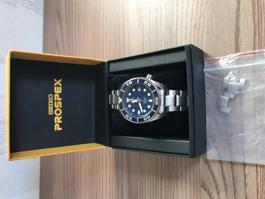 Pongo a la venta este Seiko Sumo procedente de un cambio. Es el modelo primera generación. Presenta marcas de uso, en cristal, bisel y armis. La caja de cartón no esta muy cuidada. Si buscas uno impoluto, no es este el tuyo. El armis tiene dos eslabones sobrantes, pero sin los pasadores. He tratado de hacer las fotos para que se vea el estado.