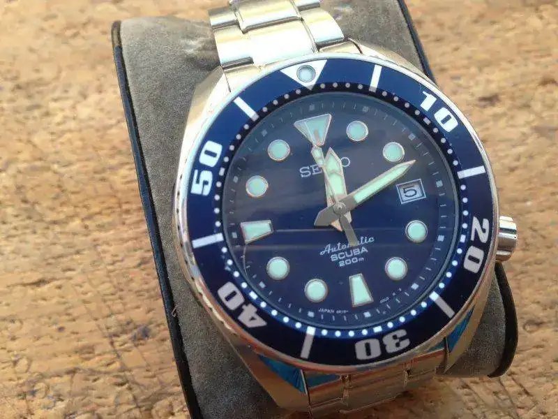 Pues lo dicho amigos, vengo mi magnifico seiko sumo azul, un reloj que se adapta bien a todas las muñecas, lo único a destacar en el reloj es un muy pequeño puntito en el bisel a la altura del 40, se ve en una de las fotos. El precio es con la correa de piel incluida. Por supuesto soy un gran seguidor del método cabanillas, si al llegar el reloj no te gusta por lo que sea, me lo dices, me lo envías y yo te devuelvo tu dinerito que para eso es tuyo. Podéis contactarme por aquí o en el tlf: 685504590, sin mas pasamos a las fotos.