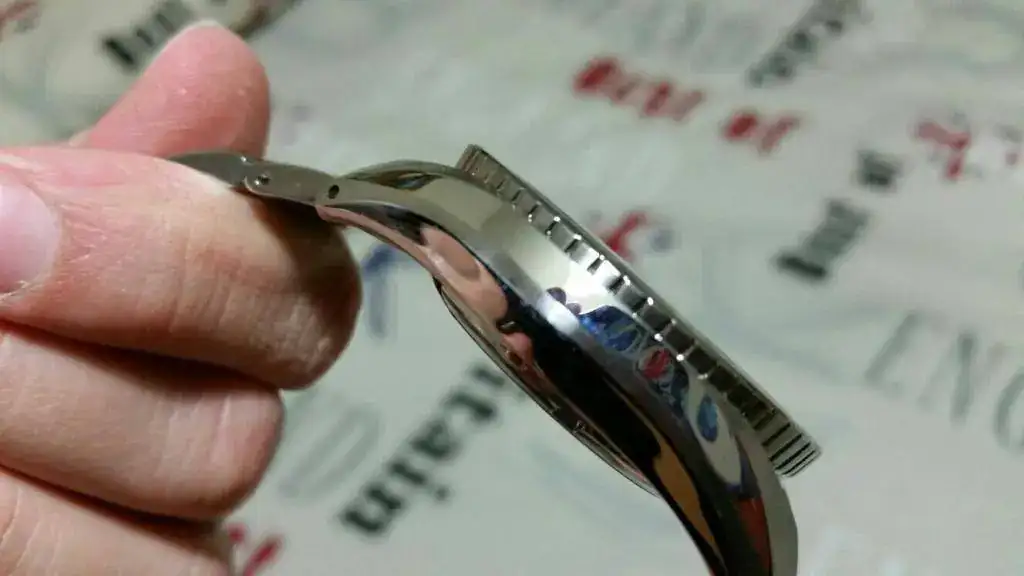 2 En la carrura en el lado de las 9 donde va el pulido cepillado se notan tres marquitas como tres machones no muy visibles pero hay están se ve q es de fábrica.