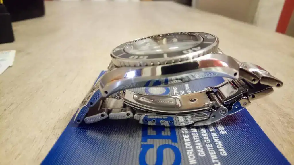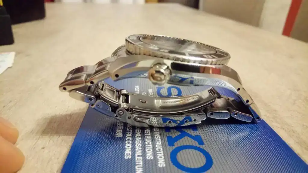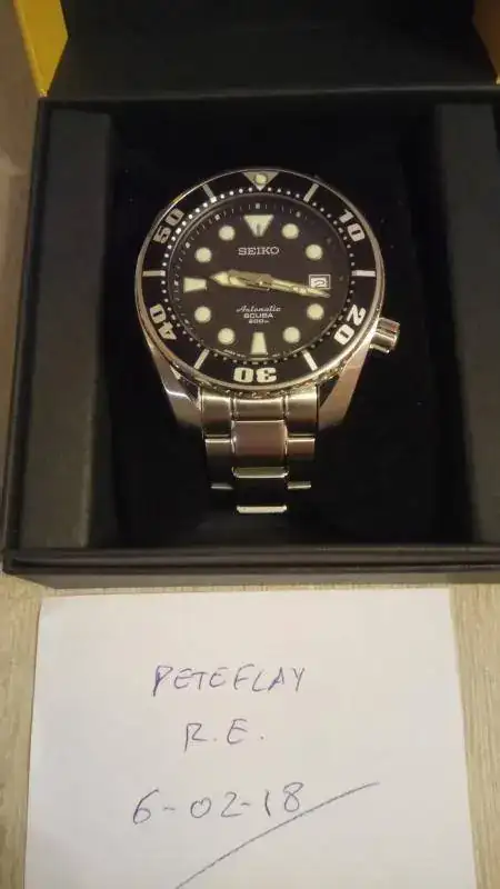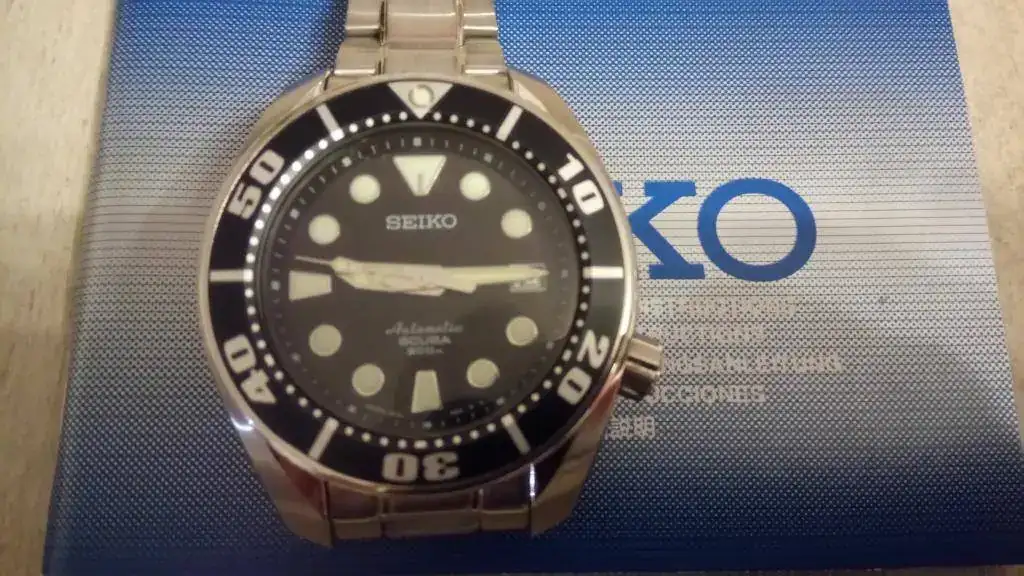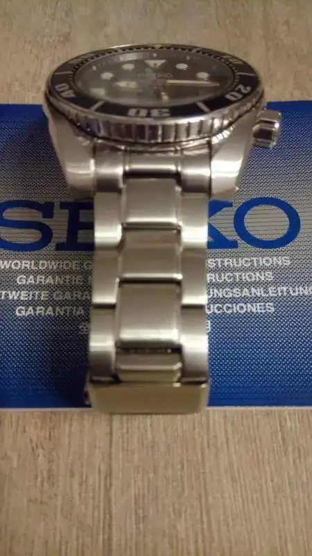 Con algunas dudas saco a la venta mi preciado Sumo negro. La razón no es otra que el que ya ha cumplido un ciclo en mi caja, y sinceramente, teniendo el MM300 no le veo mucho sentido (para mí) a seguir teniendo el Sumo sin usarlo apenas y solo por coleccionismo. He decir que el reloj está en buen estado en general, pero ha sido bastante usado, sobre todo hasta principios del año pasado que adquirí el MM300. Eso sí, no lo he tenido como reloj de batalla ni mucho menos, ni siquiera ha probado el agua. Aun así, tiene sus "cosillas": el armis tiene los típicos pelillos fruto del uso regular, sobre todo el cierre, que está bastante marcado, así como alguna marca en la parte posterior de las asas, por algún cambio de correas; el cristal está al 99%, solo tiene una mini-marca inapreciable a la altura de las 9 (no se ve a simple vista, pero está, lo aviso); y quizás lo más importante sea un pequeño golpe en el asa inferior izquierda (en las fotos casi no se aprecia, pero se ve). Creo que algunas cosas tienen solución, como los pelillos del armis, se cambian los eslabones y ya, o las marcas del cierre, que se pueden disimular con un poco de Capecod, pero eso ya es decisión del comprador.