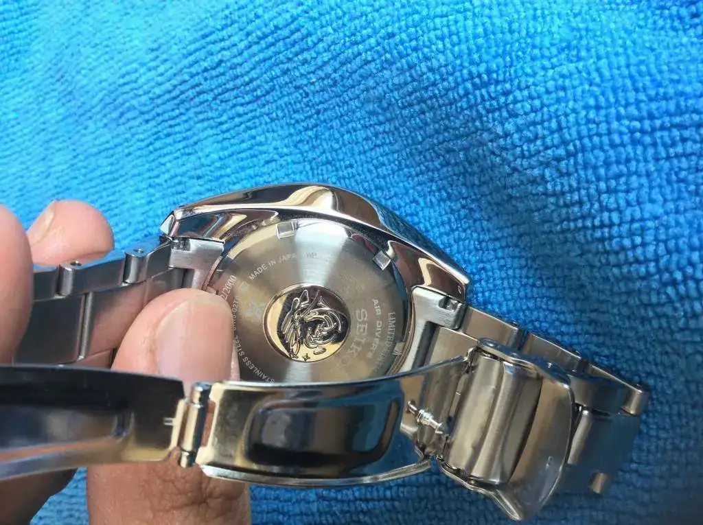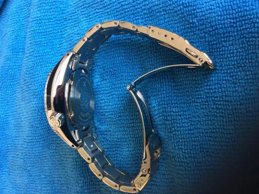 Viene totalmente completo de cajas y documentación, el estado es muy bueno (en las fotos se aprecia su buen estado, casi no se ha usado). Esta edición limitada a 2000 piezas viene con bisel cerámico, cristal de zafiro con antirreflejos, nuevo dial y agujas conmemorativo al primer Diver de Seiko, tratamiento diashield en todo el acero del reloj que da un tono más oscuro y protege contra arañazos (aleación con titanio), sumergible 200 m, suave corona roscada y firmada, extensión para traje de buceo, carrura con agujeros para quitar fácilmente los pasadores, todos sus eslabones completos.