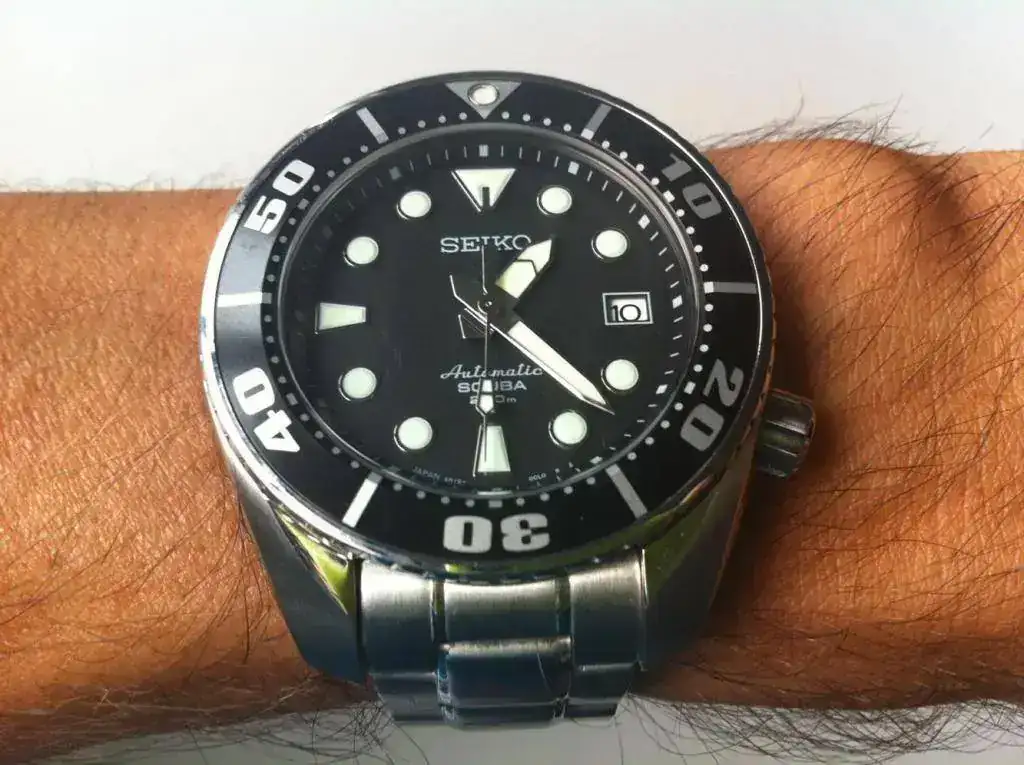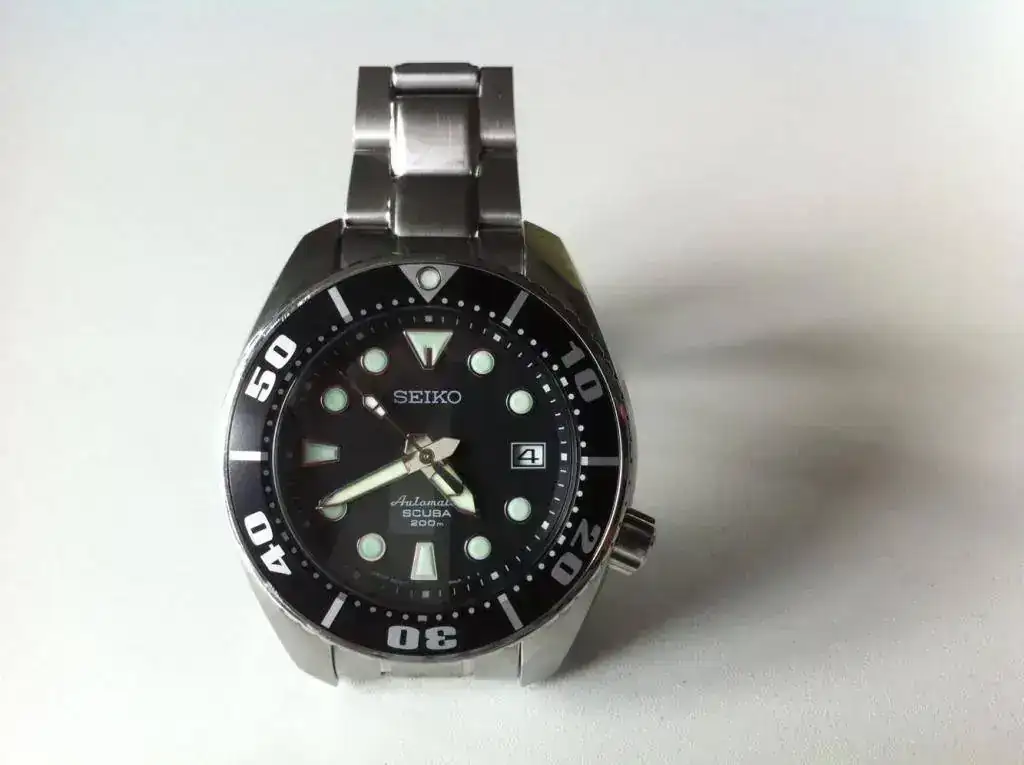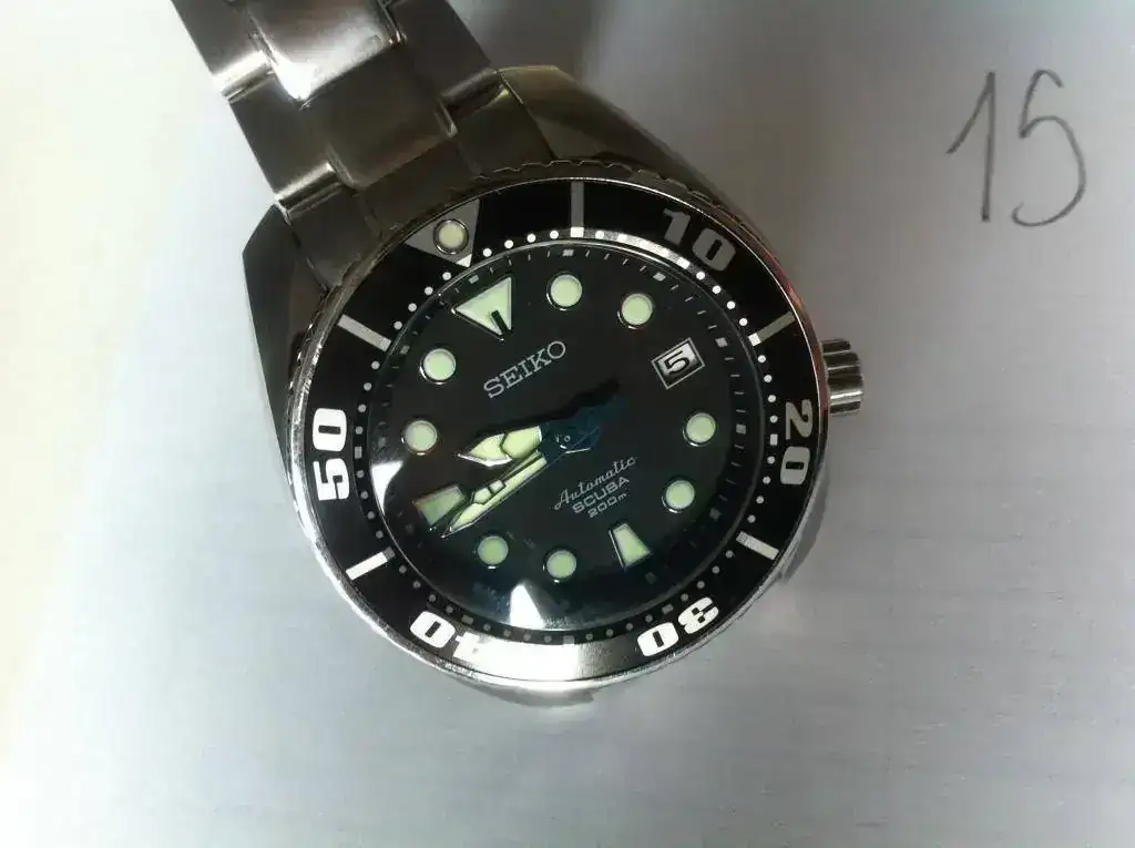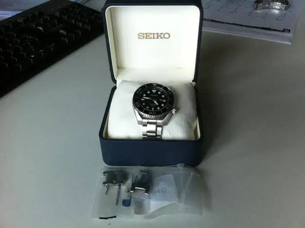 [TD]HOla, tengo en venta este Seiko Sumo comprado en el foro este mismo año. El reloj esta en muy buen estado, algunas rayas en el armis, pero nada reseñable. Lo unico a mencionar es una marca en el cristal sobre las 8, probablemente salga puliendolo, pero yo no lo he hecho. Cuenta con cuatro eslabones, ahora esta ajustado para mi muñeca, que ronda los 16cm. Se entrega con una caja generica Seiko, algo gastadilla...