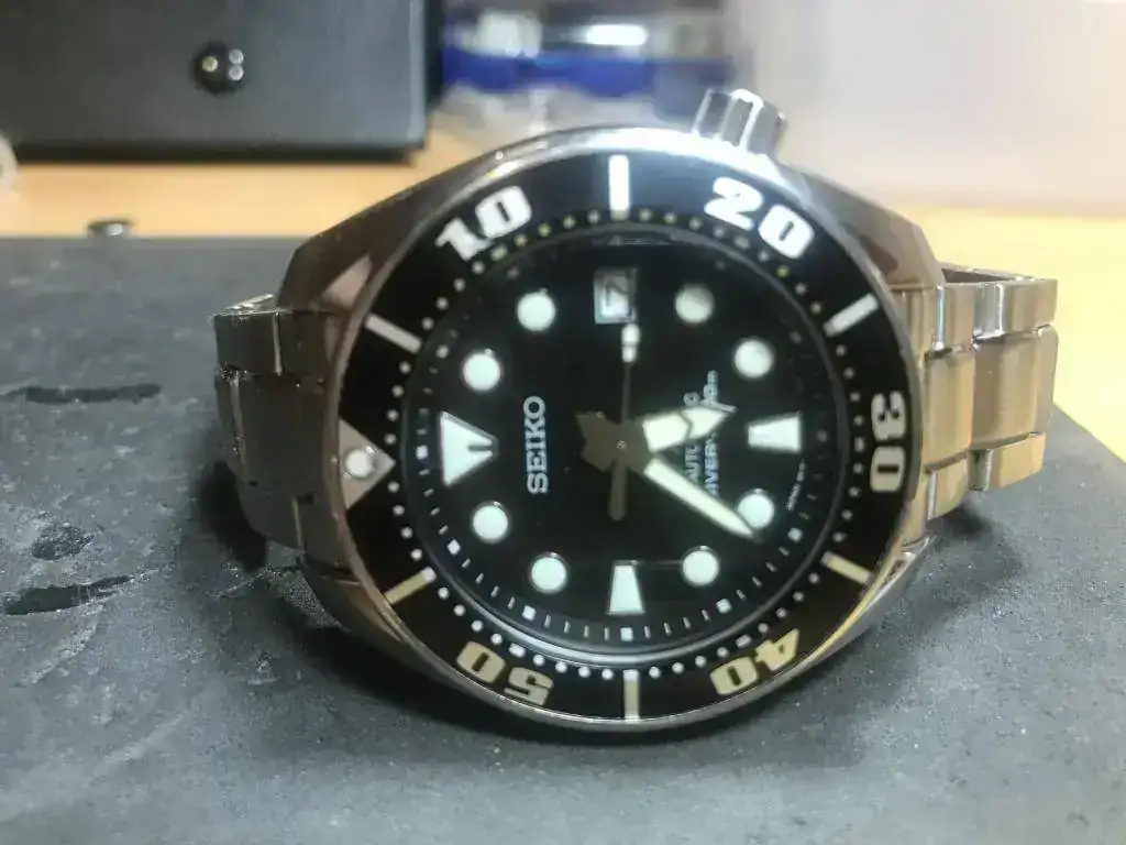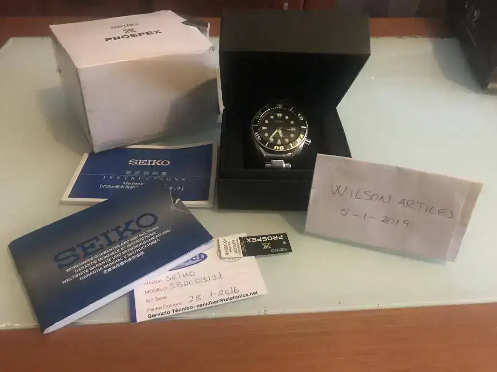 Pues muy a mi pesar saco a la venta este casi recién llegado para mi, el sempiterno Seiko Sumo, llego a mi a finales del 2018. Tiene toda la dotación, caja y documentación, tiene pequeñas microrayas del uso y un pequeño golpito en el bisel a las dos, por lo demás perfecto.