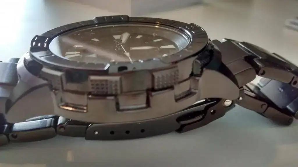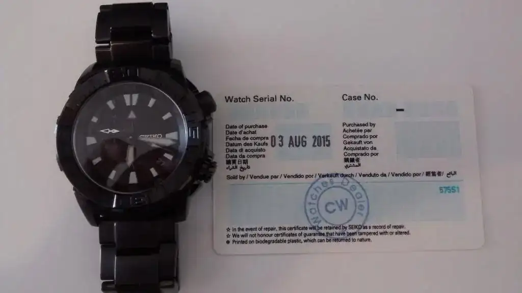 La garantía está vigente hasta el 3 de agosto de 2016. El reloj no presenta marca alguna, ni pelillos en el armis; el PVD está impecable. Viene con los eslabones sobrantes. Trae las instrucciones del reloj, de cómo usar la brújula y la documentación de la garantía.