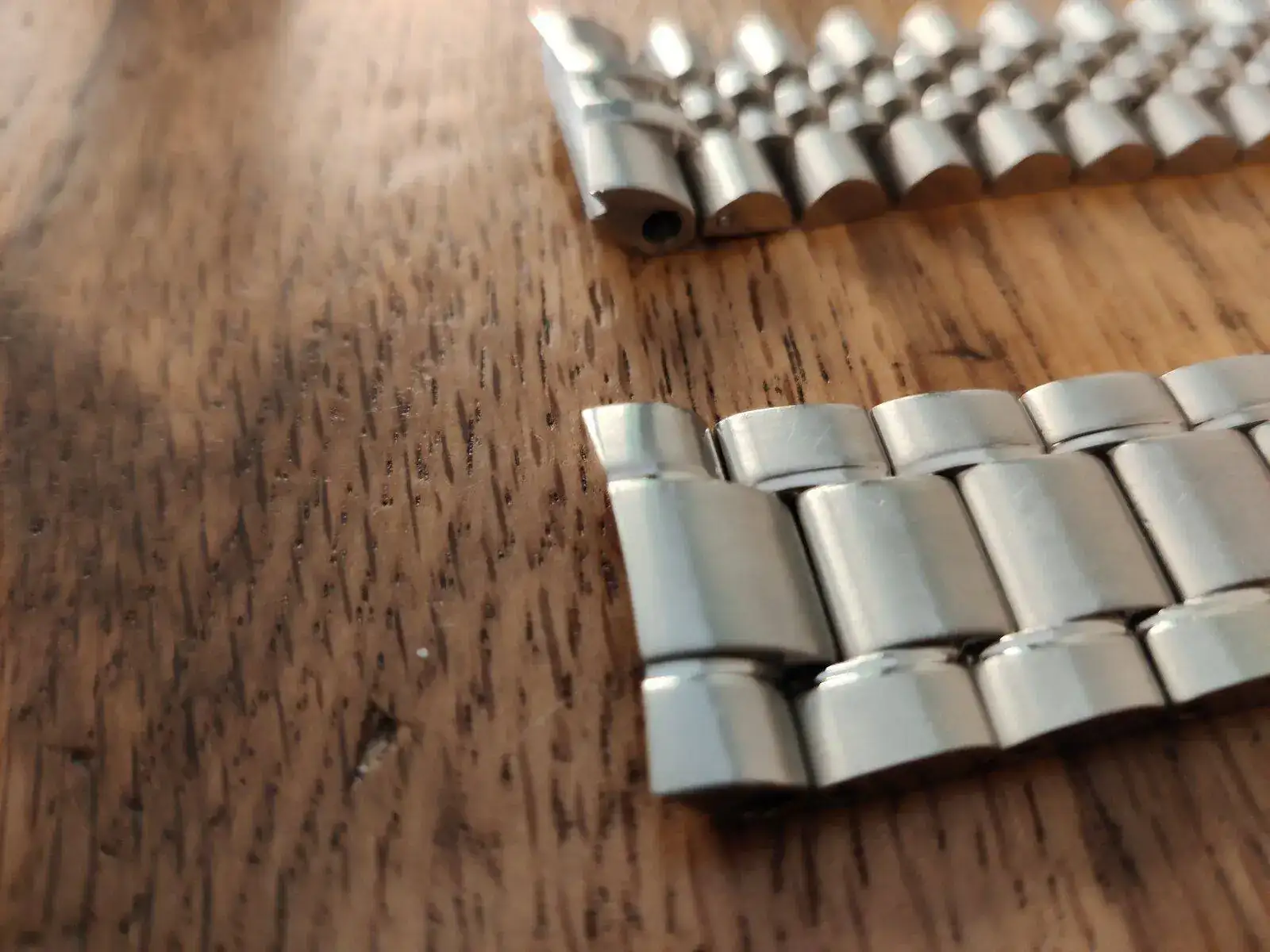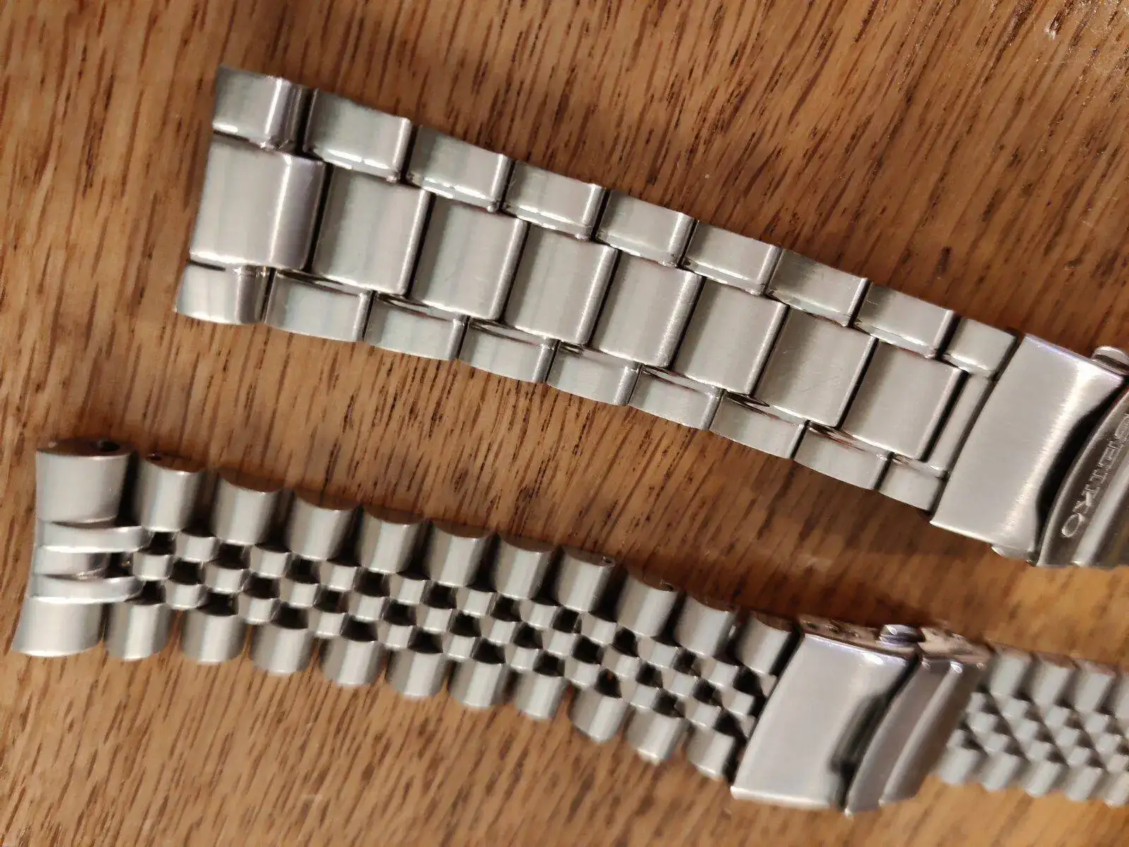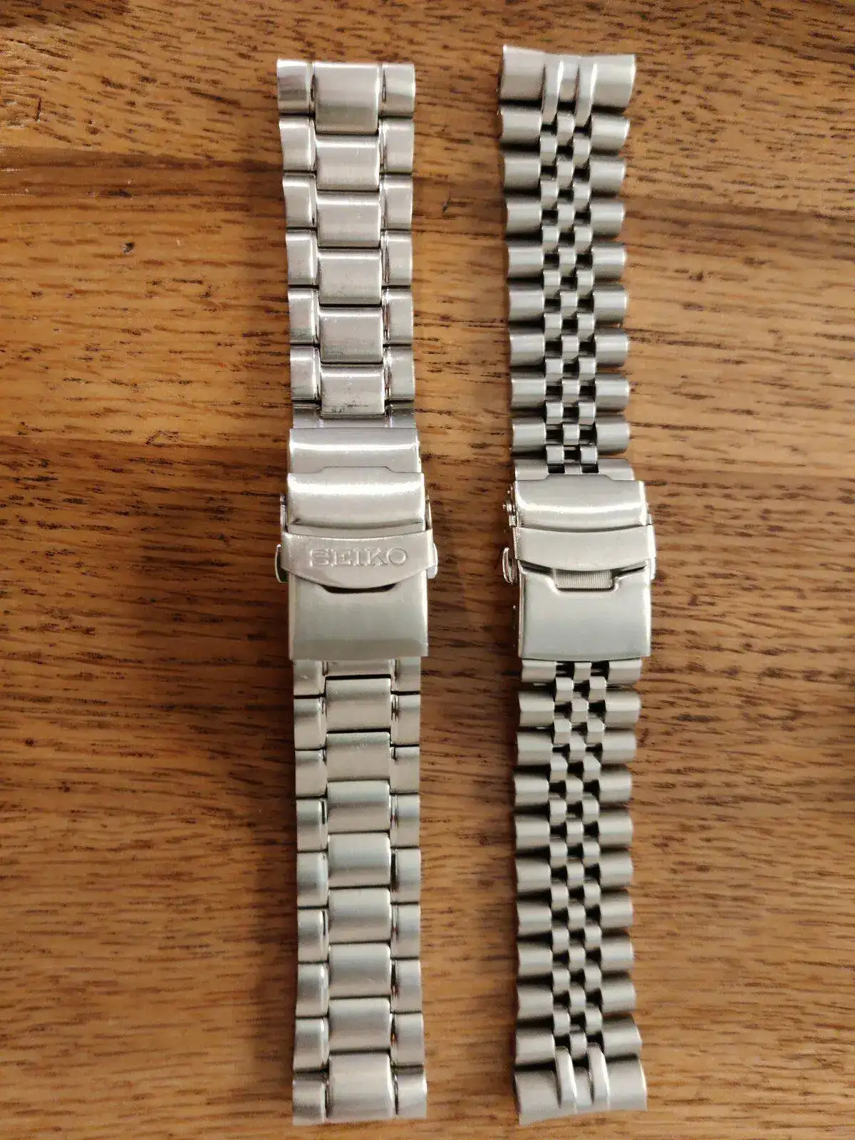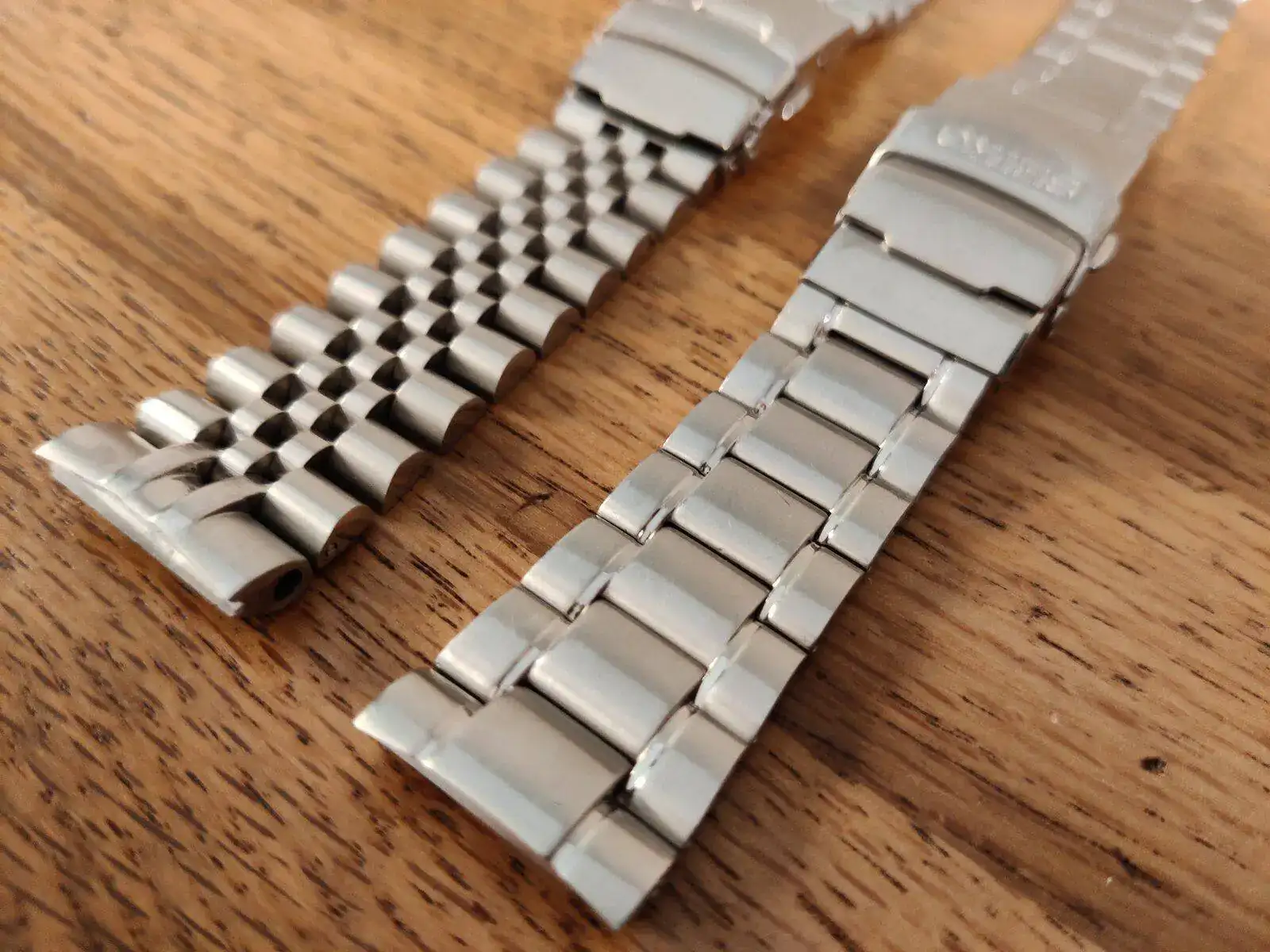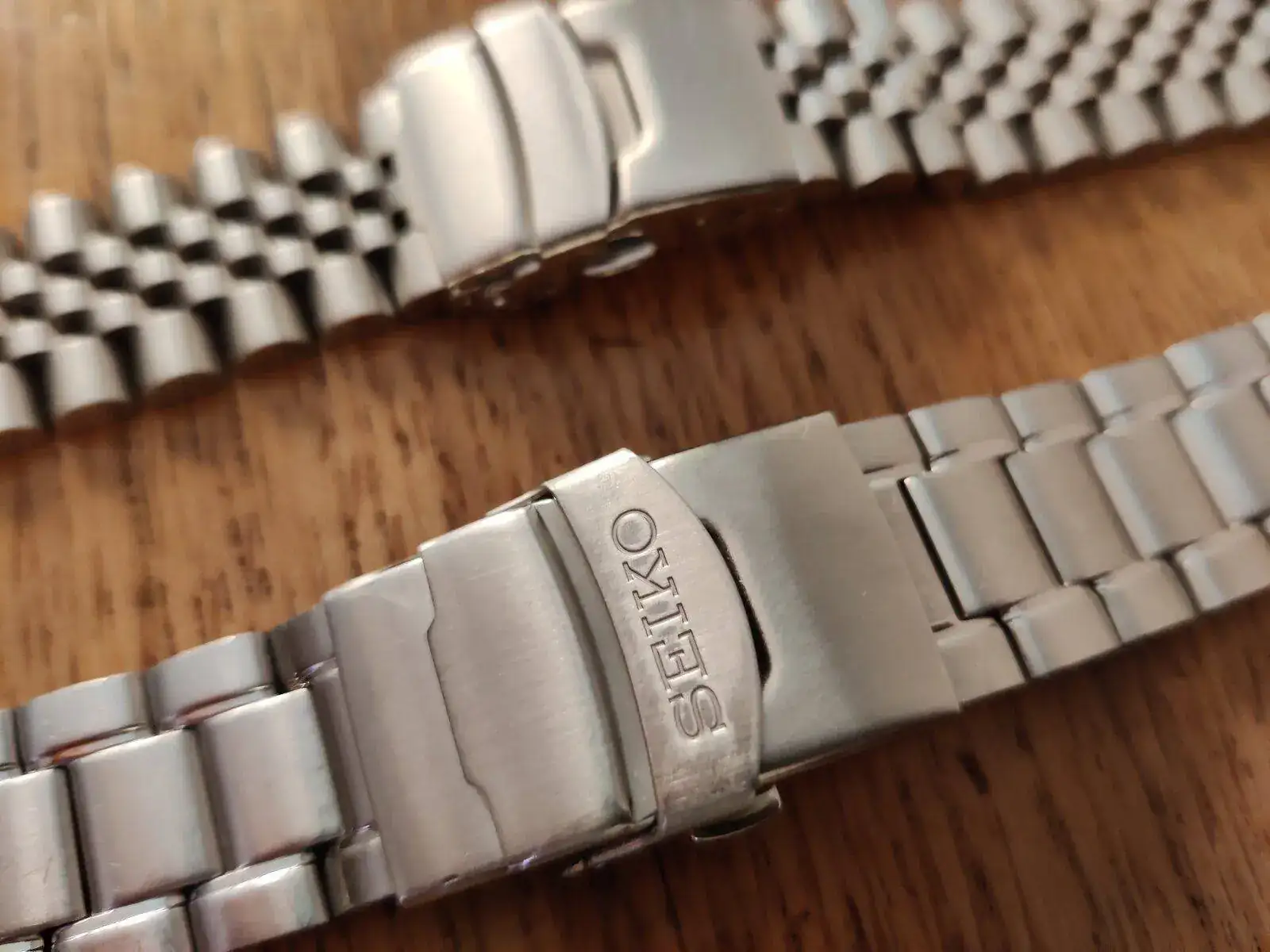 Saco estos dos armis. El original Seiko tiene su uso, cómo se aprecia, y está configurado para maximo 19,5cm de muñeca