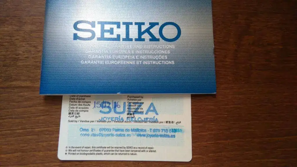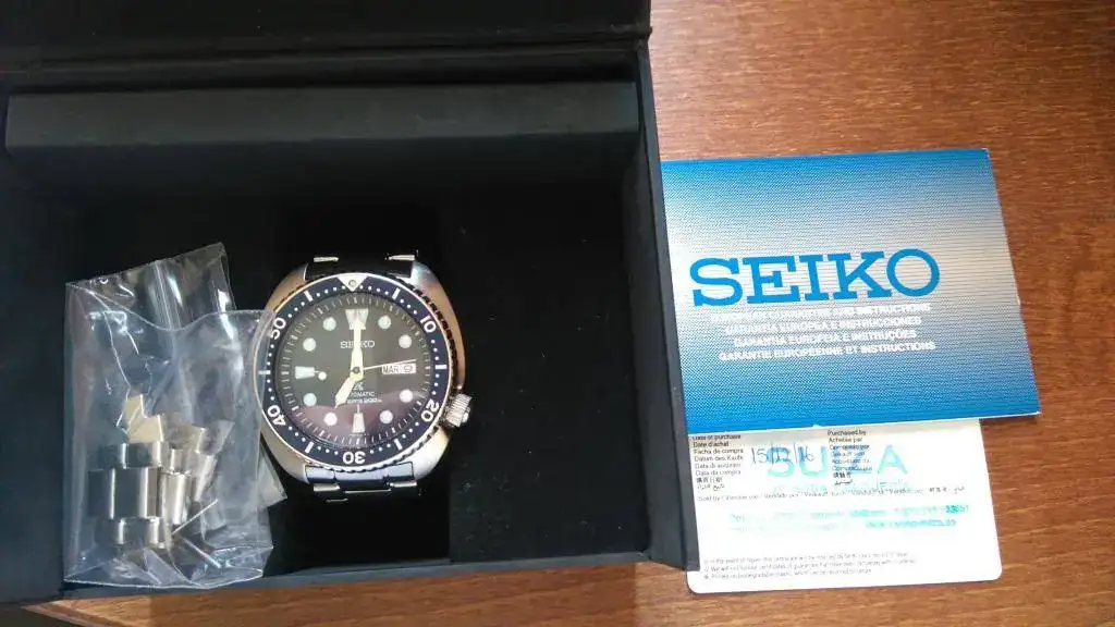 Lo envío con toda la dotación: caja original Seiko, eslabones sobrantes y garantía. Resaltar que la caja no es la que suele venir con estos Tortugas, que es algo más elaborada, si no con una más común de Seiko, pero es la que me dieron en la tienda.