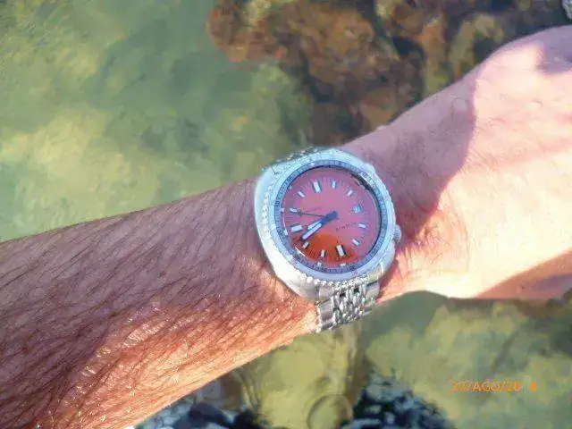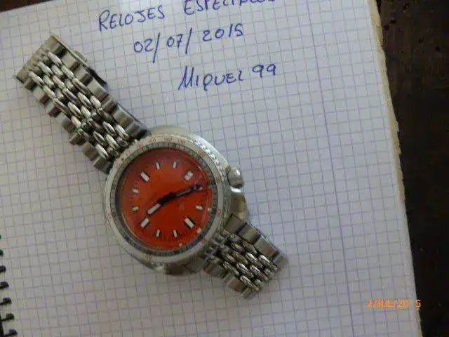 Hola compañeros con un poco de pena pongo a la venta este precioso mod de Seiko que emula a los míticos Doxa. Su marcha es francamente buena, y su estado impoluto. Se le ha hecho prueba de estanqueidad y se revisó su maquinaria por el compañero Scidone. El armis es apto para muñecas grandes y se entregan eslabones sobrantes. Se regala también un insert de acero relumeneado por el compañero Angelo. El cristal es de zafiro grueso, "doble domned" con una cara interior antireflejos, armis granos de arroz, agujas e insert estilo Doxa,anillo interno pintado de naranja...En fin, un buen y contundente diver para el verano. A priori, priorizo el cambio antes que la venta, por un seiko panda 6138-8020 en muy buen estado. El Soxa por piezas y servicio de montaje se va a más de 400E, yo lo oferto y lo valoro en 350E incluido el envío por correo certificado urgente. Muchas gracias por vuestra atención, cualquier duda la atenderé por privado. Gracias al foro por cedernos amablemente este espacio. Ahora la columna y las fotos de rigor