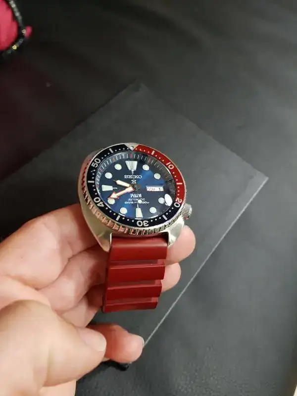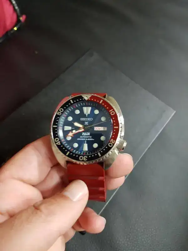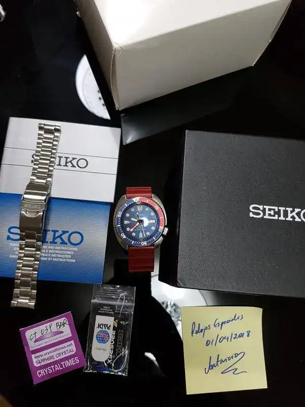 Hola vendo este conocidísimo Seiko Tortuga Padi, las especificaciones creo que las conocéis todos, este tiene montado un Cristal de Zafiro abombado que le da un empaque impresionante, una correa de caucho con cierre acero tipo mariposa, por supuesto mando el hardlex original y el armis original, ademas de etiquetas documentación de joyería Nacional caja etc.