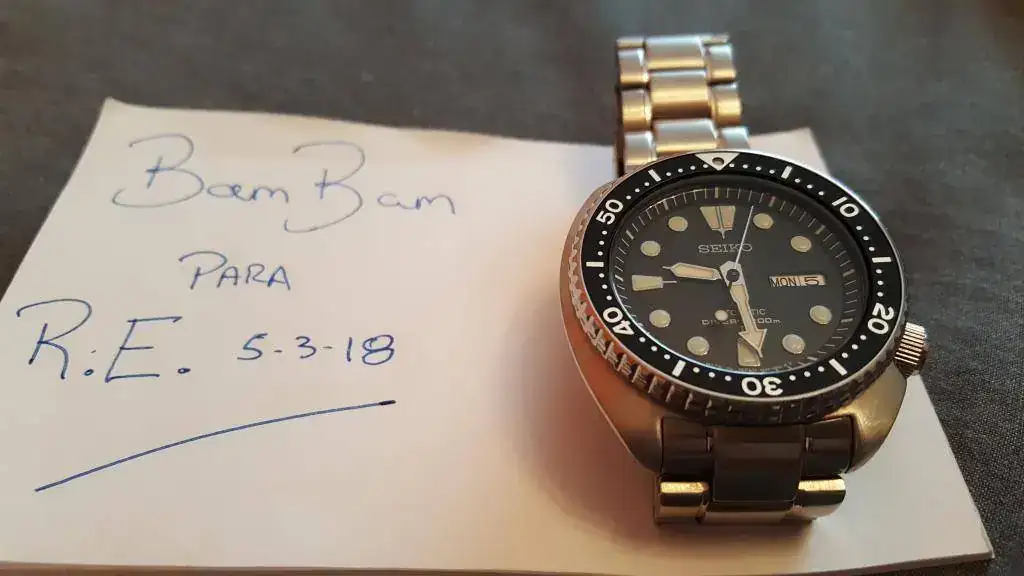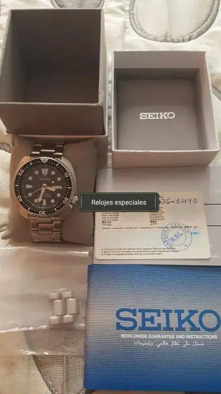 Propongo para cambio esta tortuguita porque me apetece probar algo nuevo. El estado es seminuevo, le pondría un 9 sobre 10. Es la versión fabricada en Japón con datario en Inglés y Kanji. El armis viene con eslabones sobrantes y mucha garantía por delante.