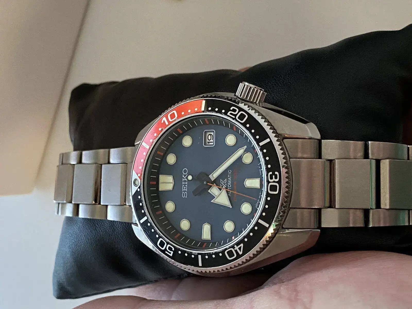 El reloj tiene una esfera azul preciosa Que refleja el color azul de las playas de malta al atardecer así como el color del bisel refleja el color anaranjado del cielo. Se entrega con armis de acero original para muñecas de hasta 20cm y su correa de caucho que le acompaña