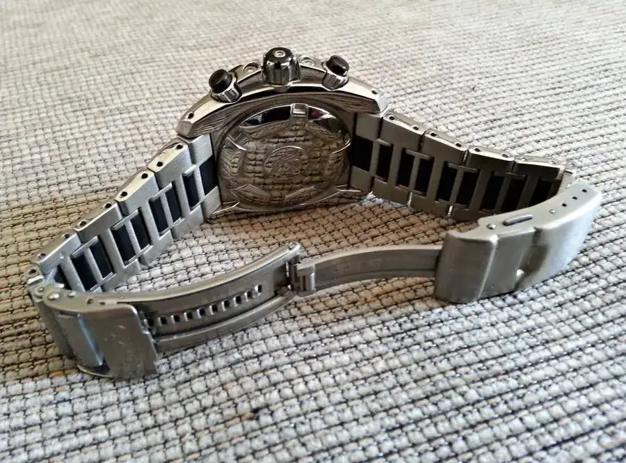 - Caja de acero, bisel negro de TicN (Titanium Carbon Nitride).