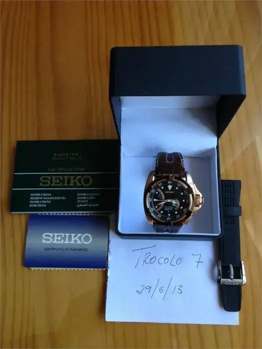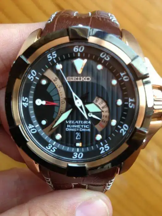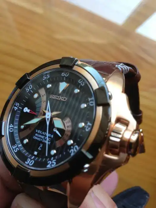 Muy buenas, compañeros. Saco a la vente este Seiko Velatura Kinetic oro rosa en un estado verdaderamente impecable, de reestreno, sin un sólo roce o pelo. Tanto es así, que parece nuevo. Lo he puesto dos veces nada más desde que lo adquirí hará como 3 meses. Los acabados con fabulosos, lo mires por donde lo mires, es precioso. Carga con el movimiento y también manualmente, como si diésemos cuerda a un reloj mecánico. Se ve al instante cómo la aguja de carga va oscilando. La precisión es increíble y todos sus funciones van a la perfección.