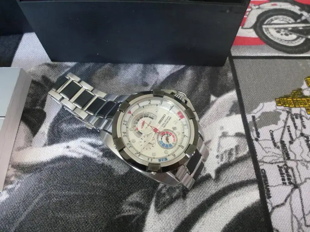 Muy buenas, saco a la venta este precioso y deportivo Seiko. Su estado es muy bueno, tan sólo los típicos pelillos en cierre y alguno en armis pero como ya digo muy leves. Caja, bisel y cristal impolutos. Set completo con sus cajas, manuales, armis con todos sus eslabones. No me interesan cambios ya que estoy haciendo caja para ir a por otra pieza.