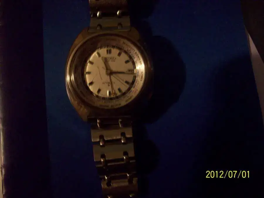 Perdonad que tercie en este hilo, un poco a destiempo. Tengo un world time exactamente igual al de PINON en cuanto a armis, esfera, bisel (Moscú-Dharan, en efecto) y numeración 0N2514 (NOVIEMBRE DEL 70, supongo) JAPAN F. Pero en cambio las alteraciones que Pinon resalta respecto a Antoniop no las tiene, pues el mío es igual al de este: SEIKO world time- automatic. Siento no poder poner fotos, pero con el móvil (o mi falta de habilidad) estos detalles no aparecen.