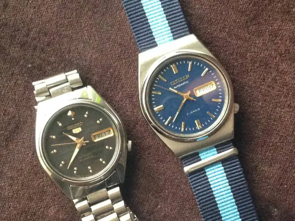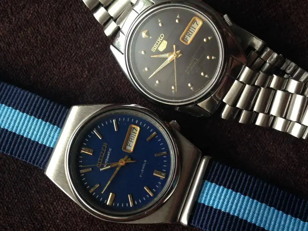 Saco a la venta estos dos relojillos un Seiko 5 y un Citizen que aun funcionando con una cierta corrección necesitan una buena limpieza y aceitado para que vuelvan a ser los que fueron.